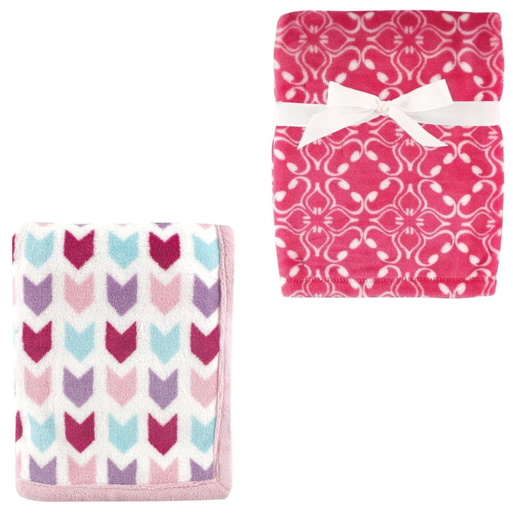 2-Pk Plush Blanket, Blue Moose/Powder Blue, One Size(Pink Arrows/Circle)