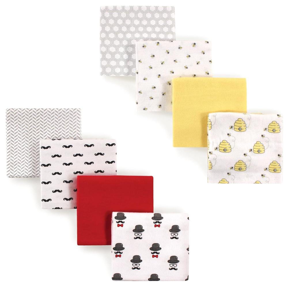 Flannel Receiving Blanket 8-Pack(Mustache/Hat/Bees)