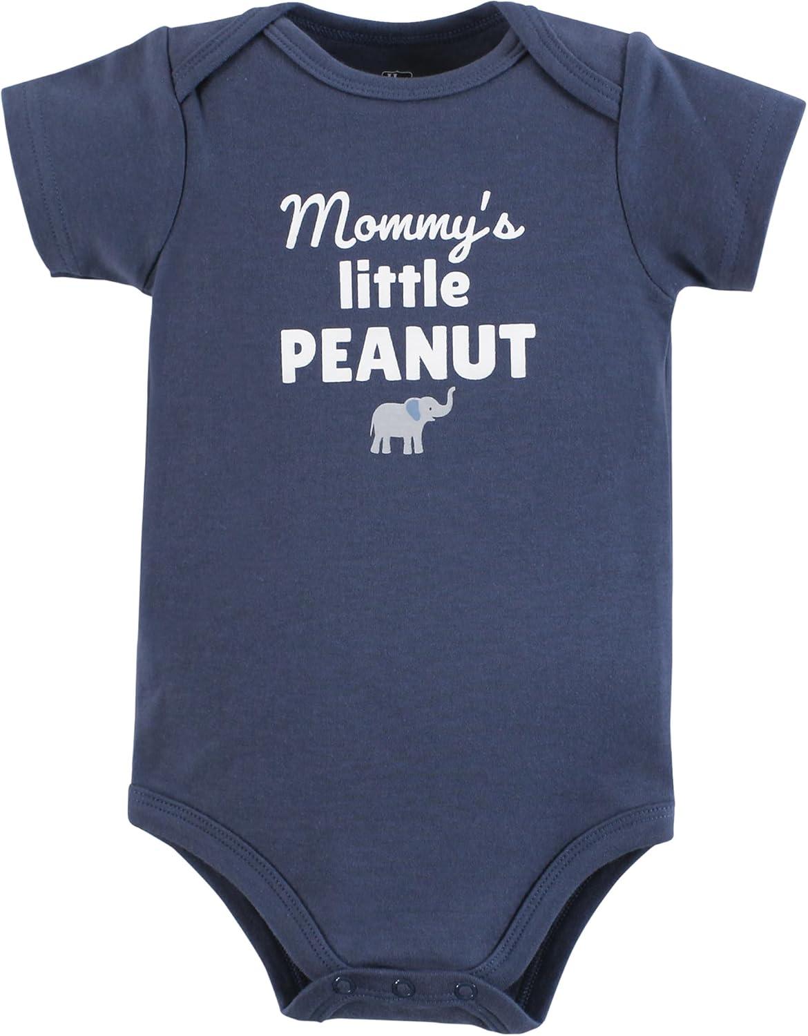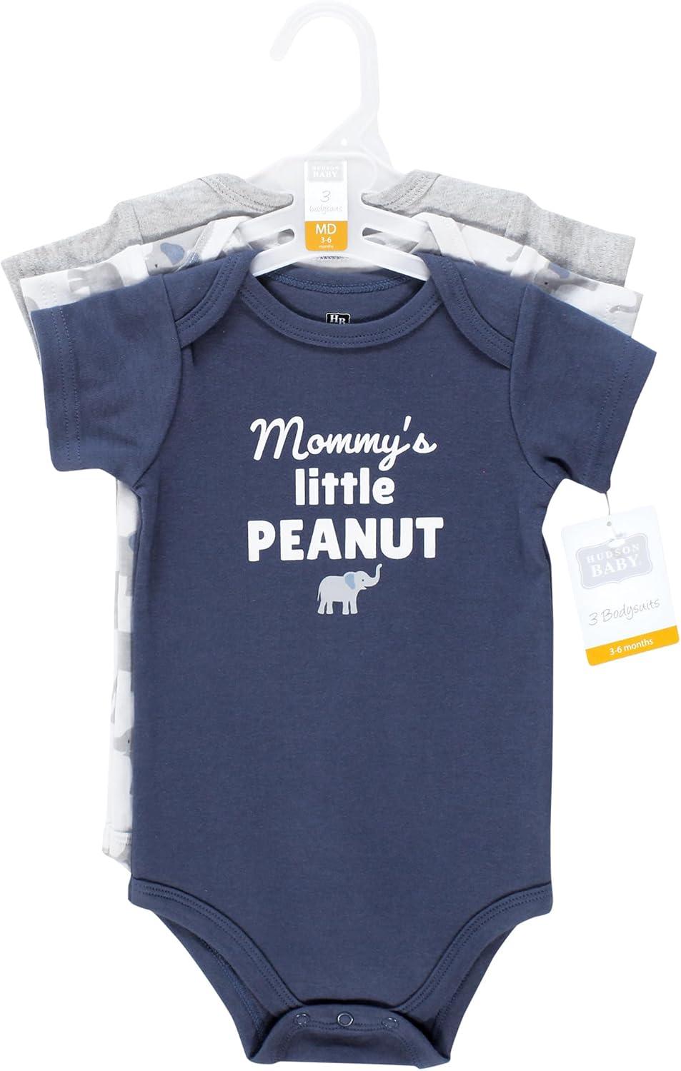 Hudson Baby baby-boys Cotton Bodysuits 3-pack(Blue Elephant Peanut)