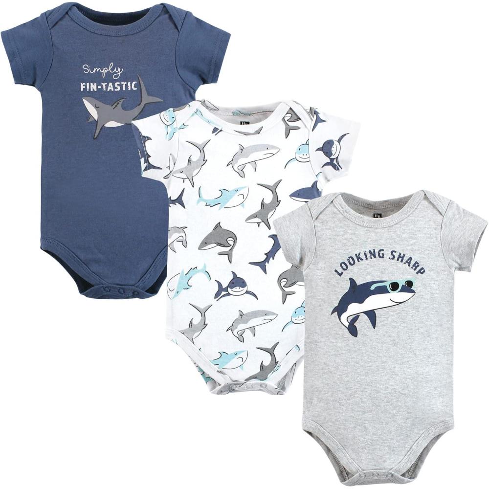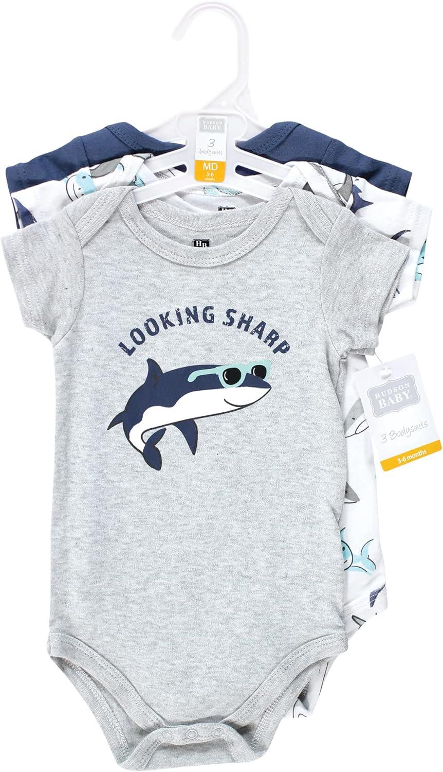 Hudson Baby baby-boys Cotton Bodysuits 3-pack(Fintastic)