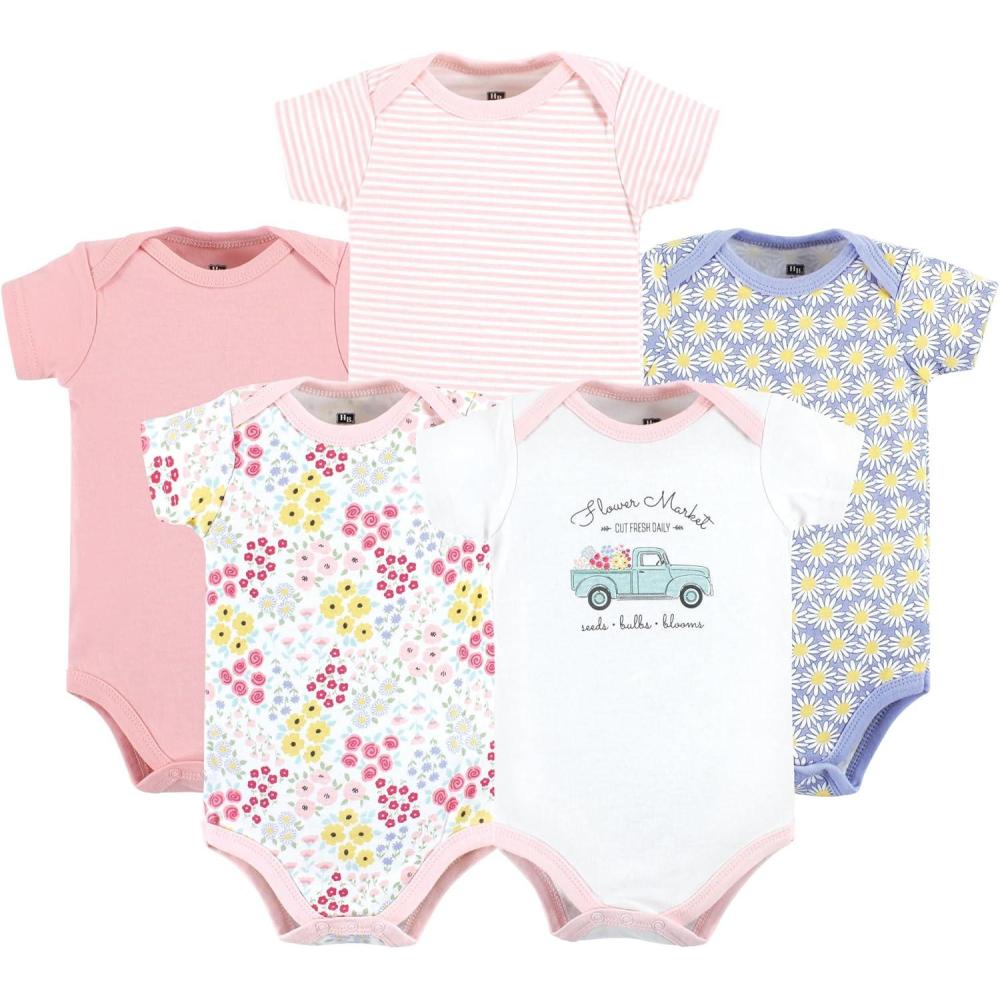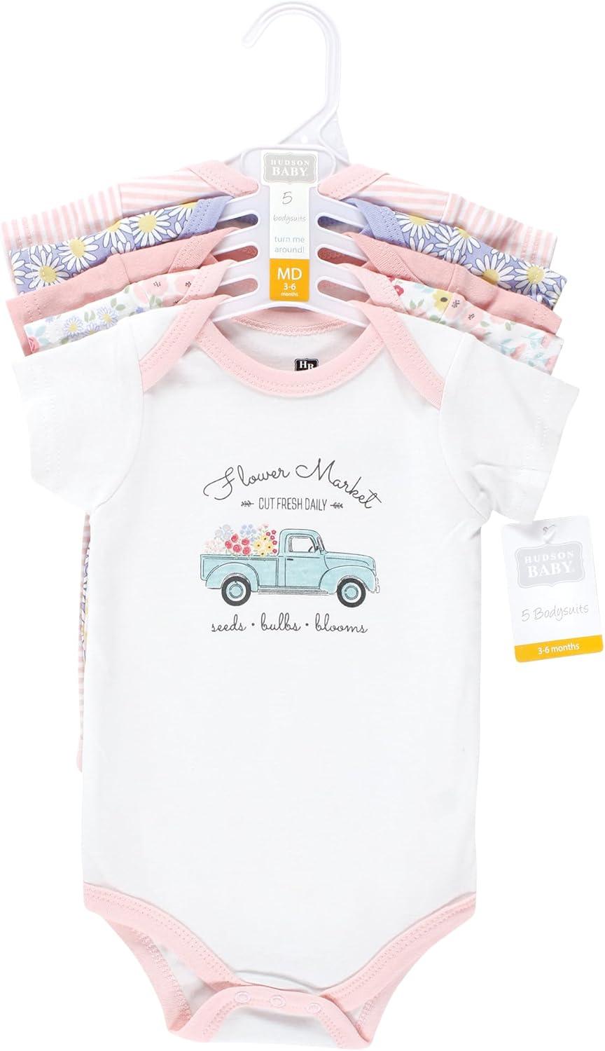 Hudson Baby baby-boys Cotton Bodysuits 5-pack(Flower Market)