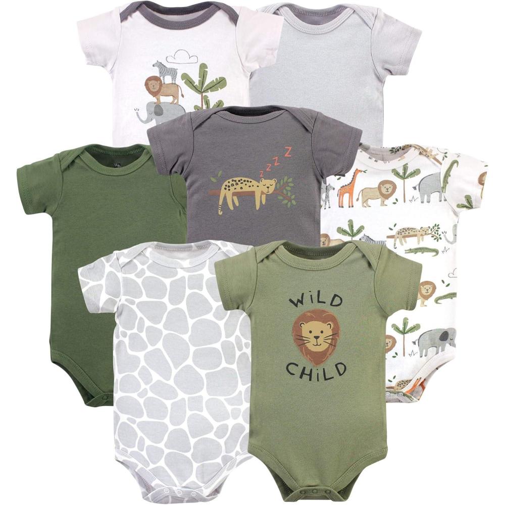 Hudson Baby baby-boys Cotton Bodysuits 7-pack(Safari Life)