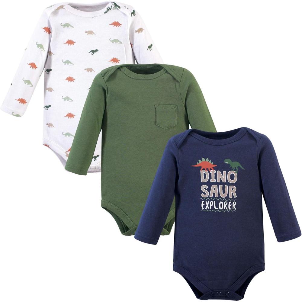Hudson Baby baby-boys Cotton Long-sleeve Bodysuits 3-pack(Dinosaur Explorer)