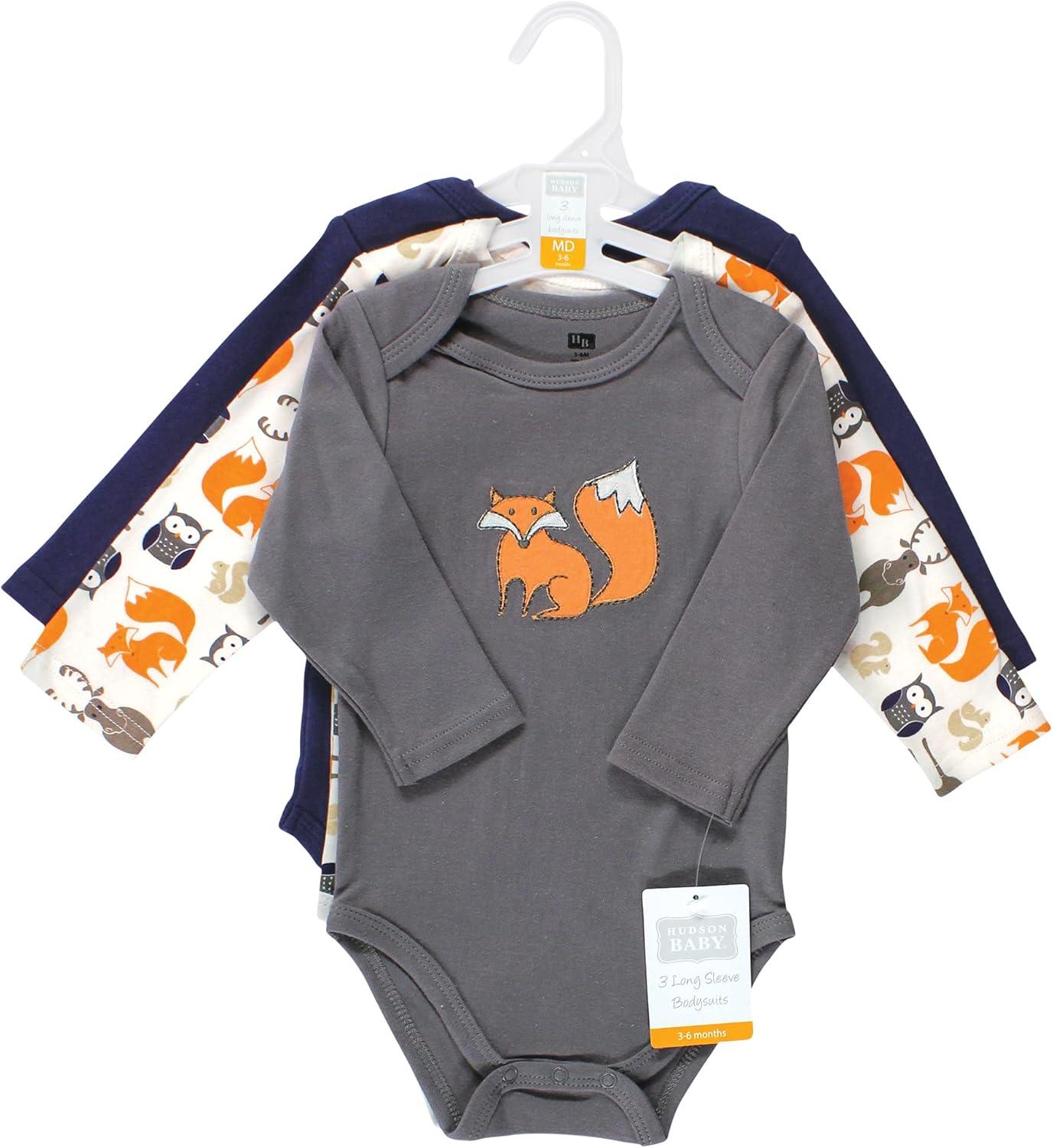 Hudson Baby long-sleeve bodysuits are an essential part of baby's wardrobe. Our bodysuits feature adorable prints, embroideries, stripes and solids and provide a comfortable base layer that's great for pairing with pants, shorts, or even wearing under outfits. Our bodysuits are comfortable and cozy for all-day, everyday wear for your little one.