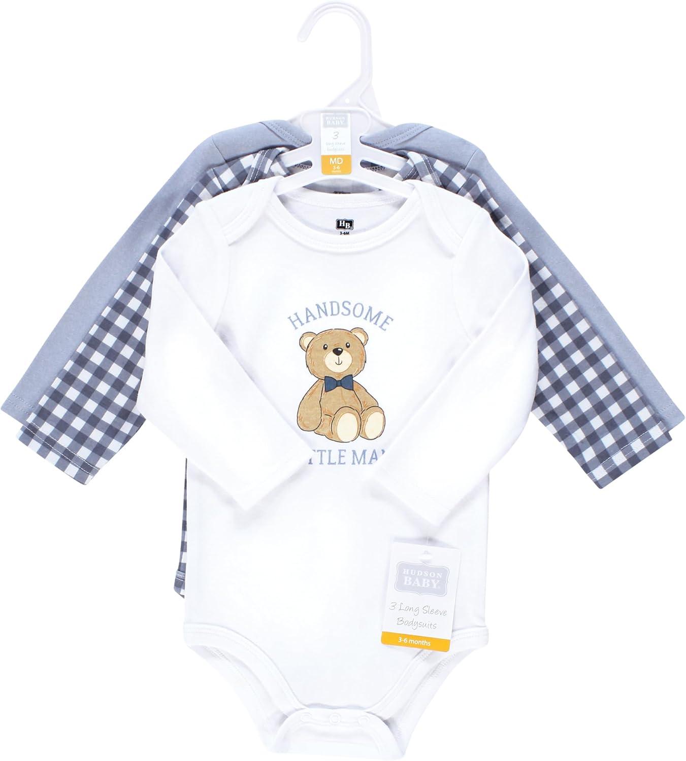 Hudson Baby baby-boys Cotton Long-sleeve Bodysuits 3-pack(Gentleman Bear)