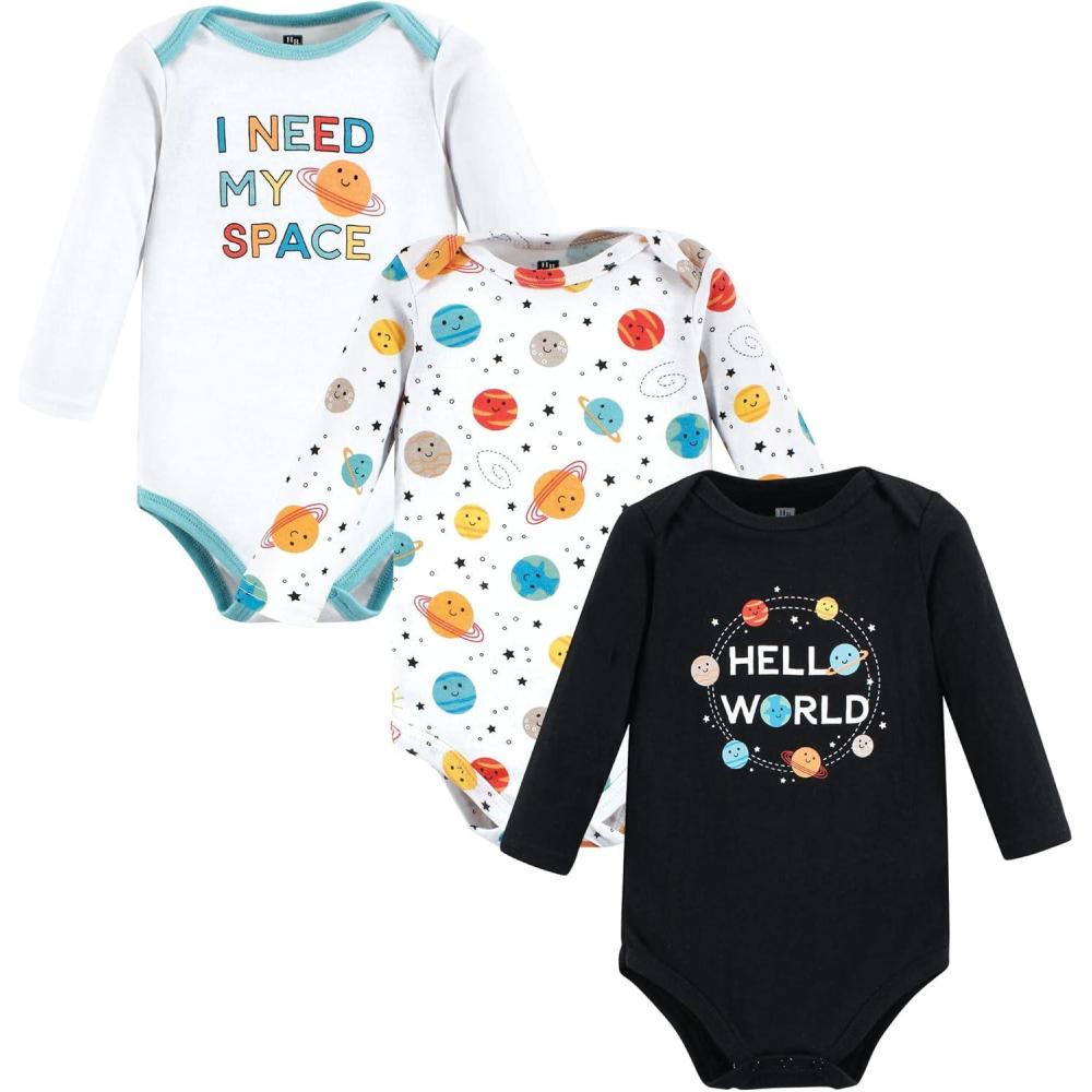 Hudson Baby baby-boys Cotton Long-sleeve Bodysuits 3-pack(Happy Planets)