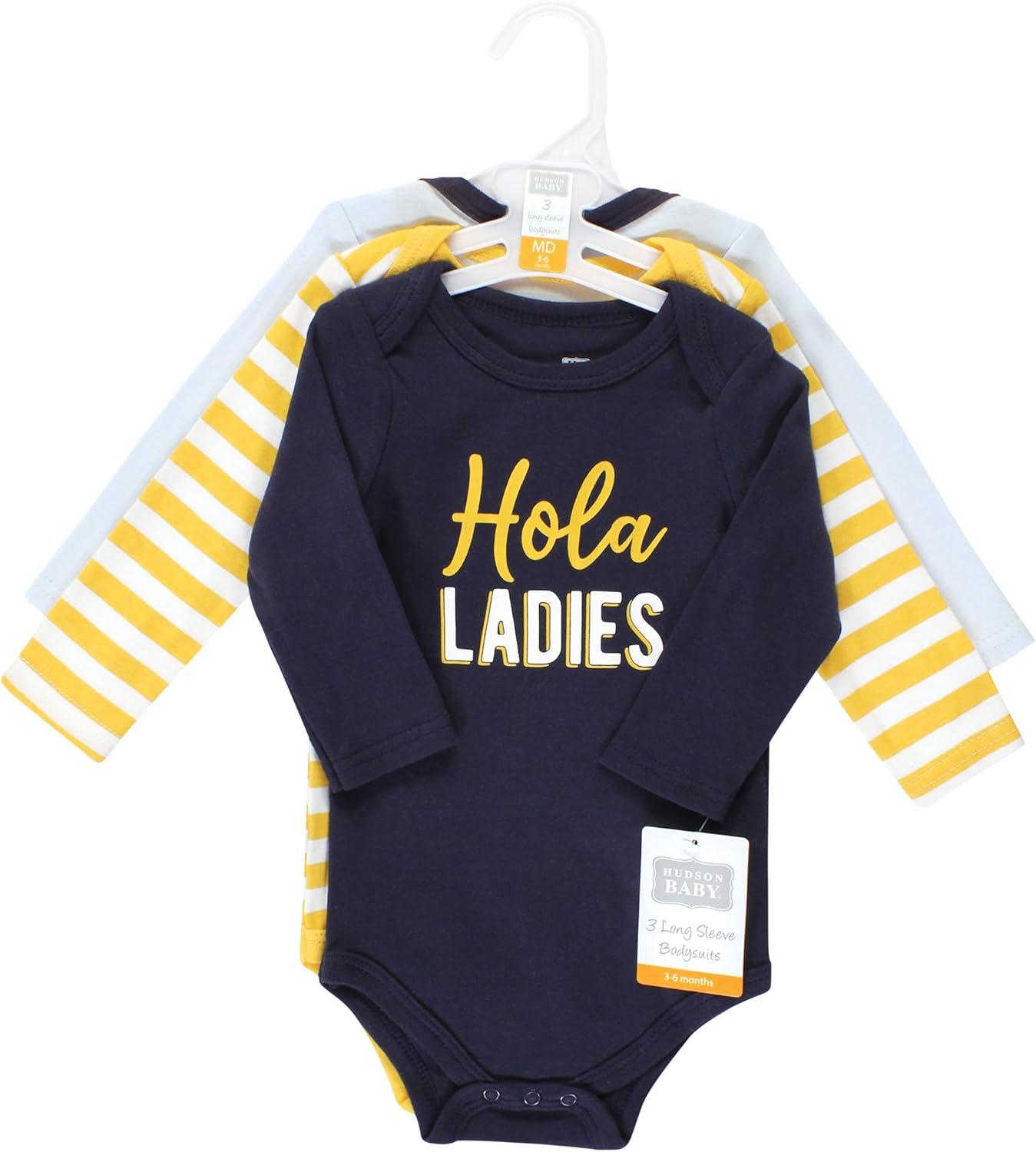 Hudson Baby baby-boys Cotton Long-sleeve Bodysuits 3-pack(Hola Ladies)