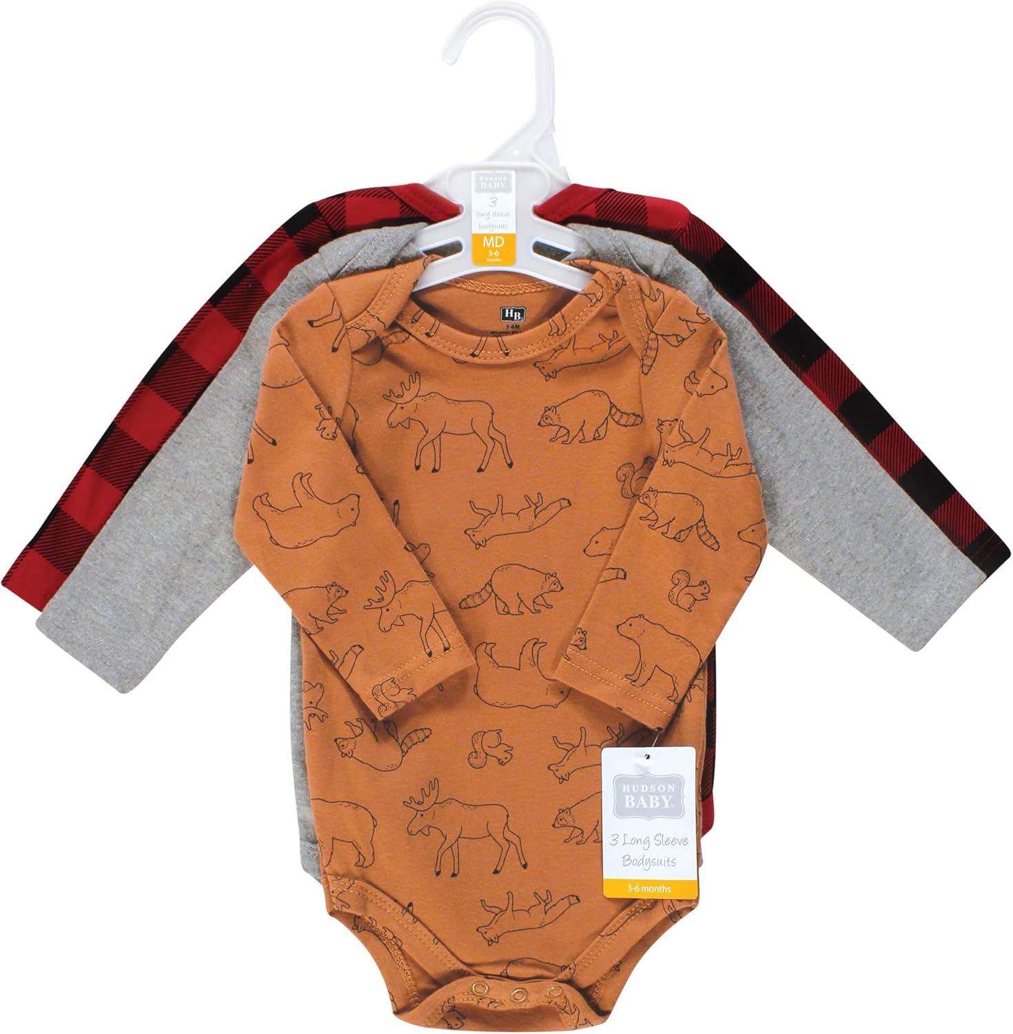 Hudson Baby baby-boys Cotton Long-sleeve Bodysuits 3-pack(Into the Woods Prints)