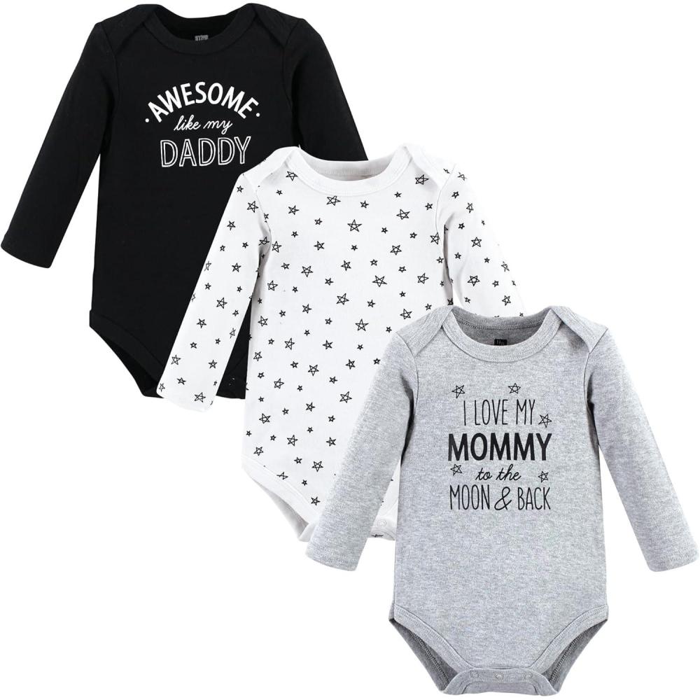 Get more for your money with our exclusive bundle deals on Hudson Baby baby-boys Cotton Long-sleeve Bodysuits 3-pack(Mom Dad Moon Back) and accessories.