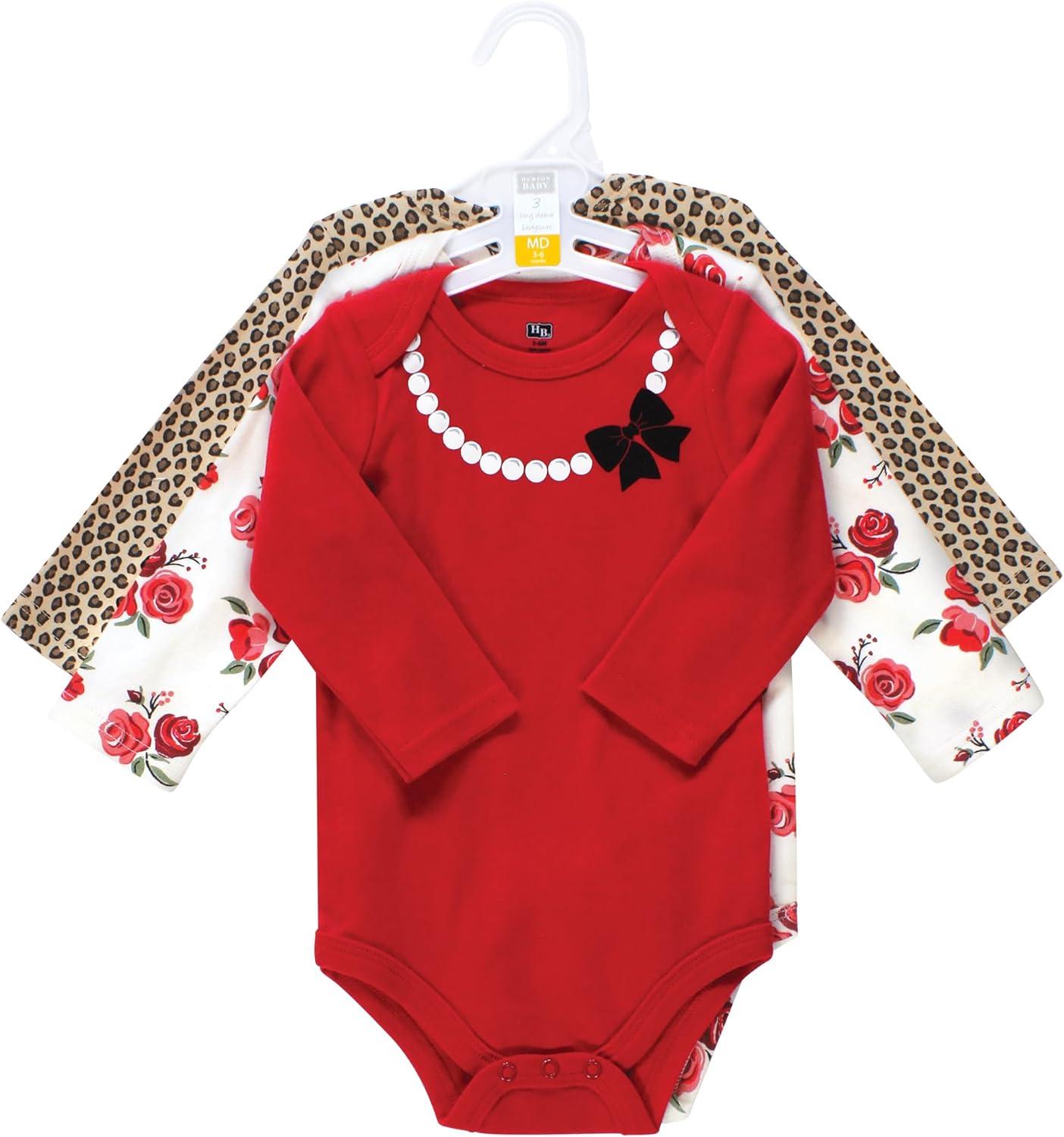 Hudson Baby baby-boys Cotton Long-sleeve Bodysuits 3-pack(Red Rose Leopard)