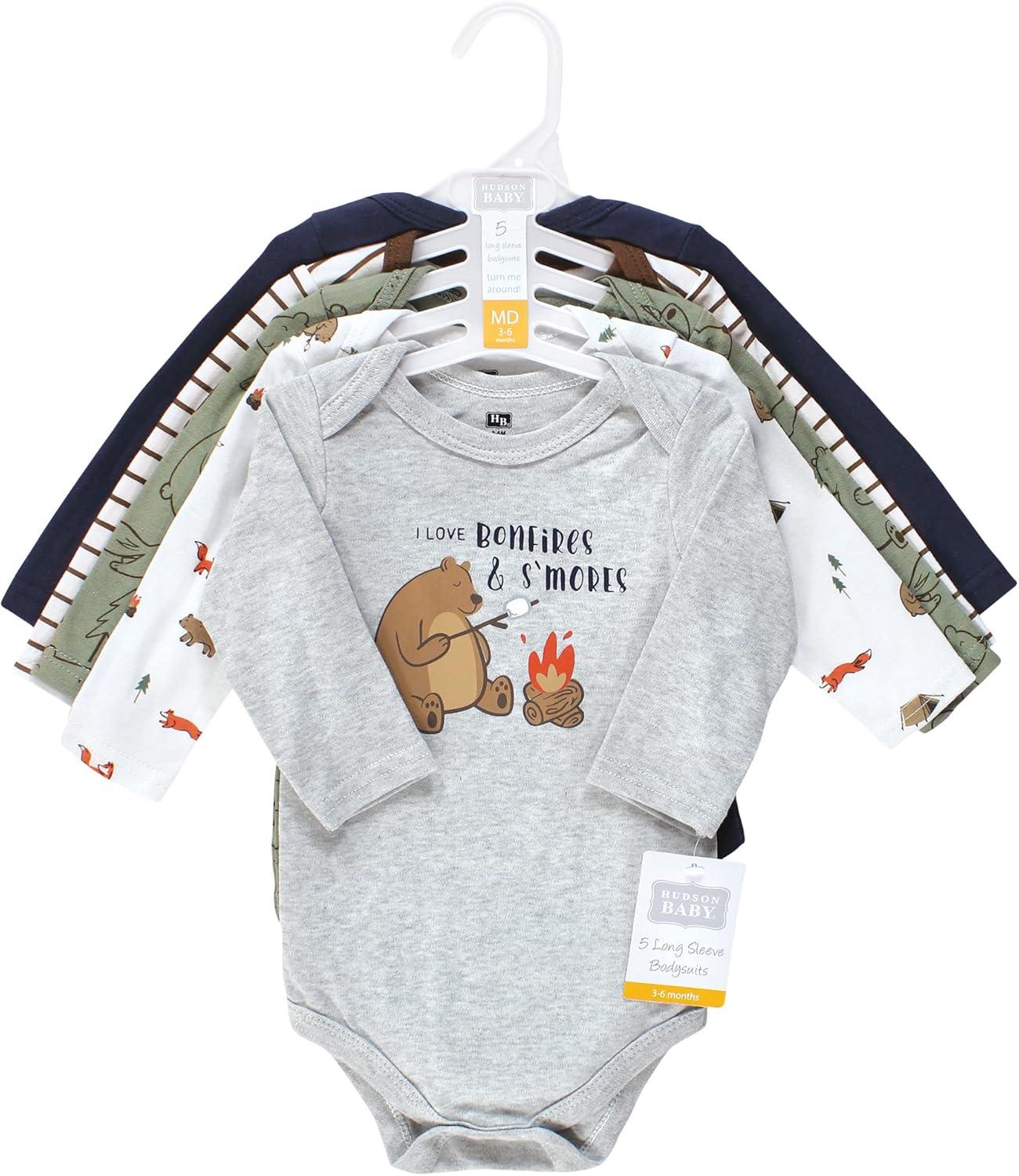 Hudson Baby baby-boys Cotton Long-sleeve Bodysuits 5-pack(Camping Animals)