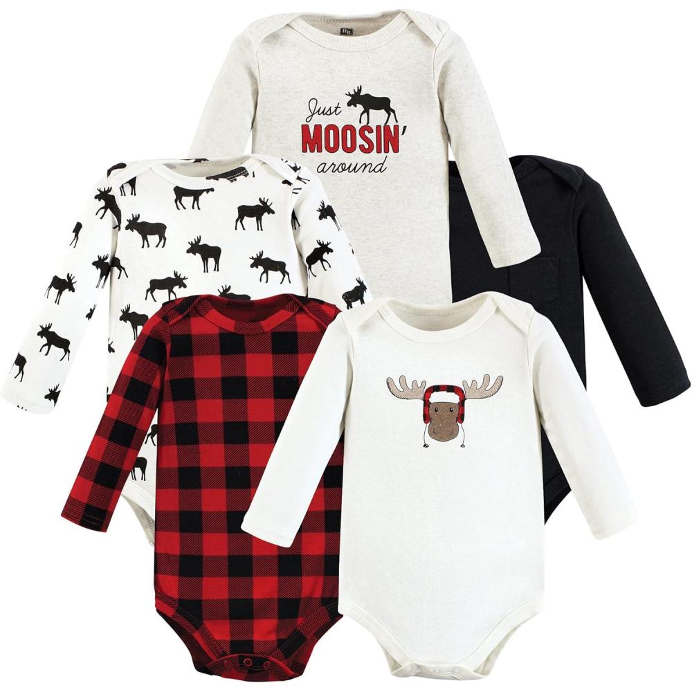 Hudson Baby baby-boys Cotton Long-sleeve Bodysuits 5-pack(Winter Moose)