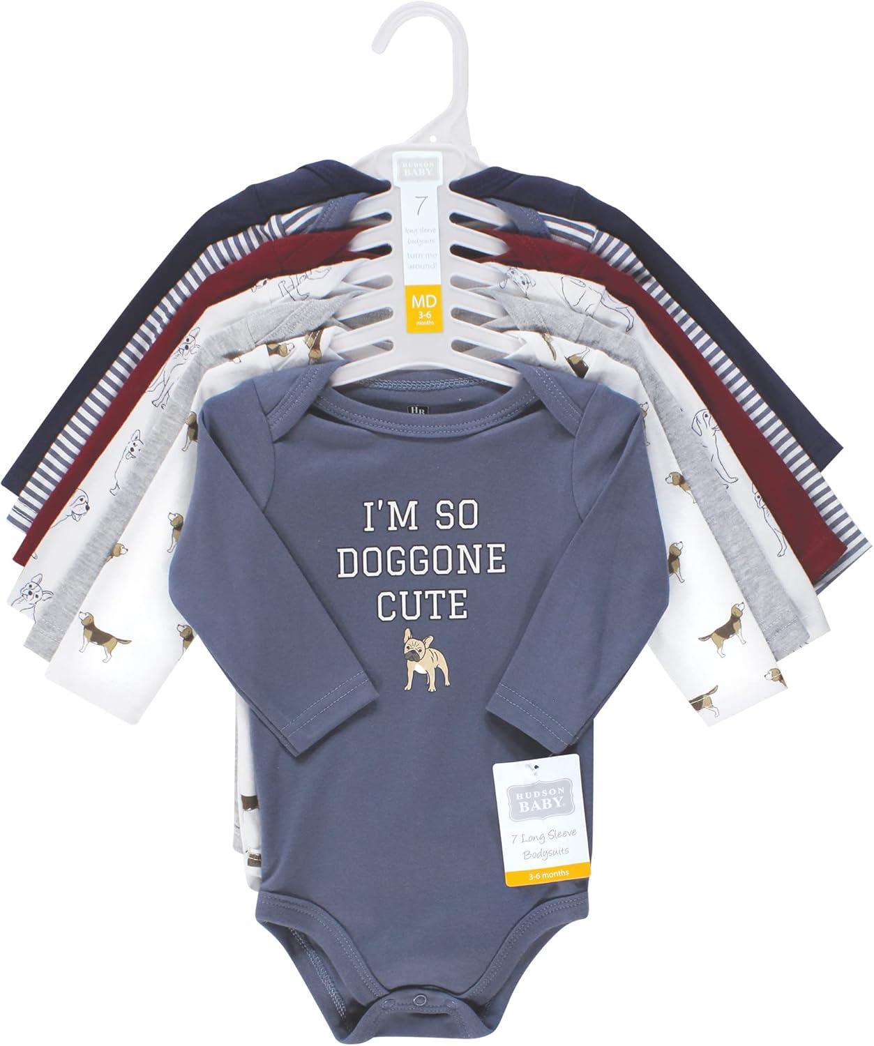 Hudson Baby Baby Boys Cotton Long-sleeve Bodysuits 7-pack(Boy Dogs)
