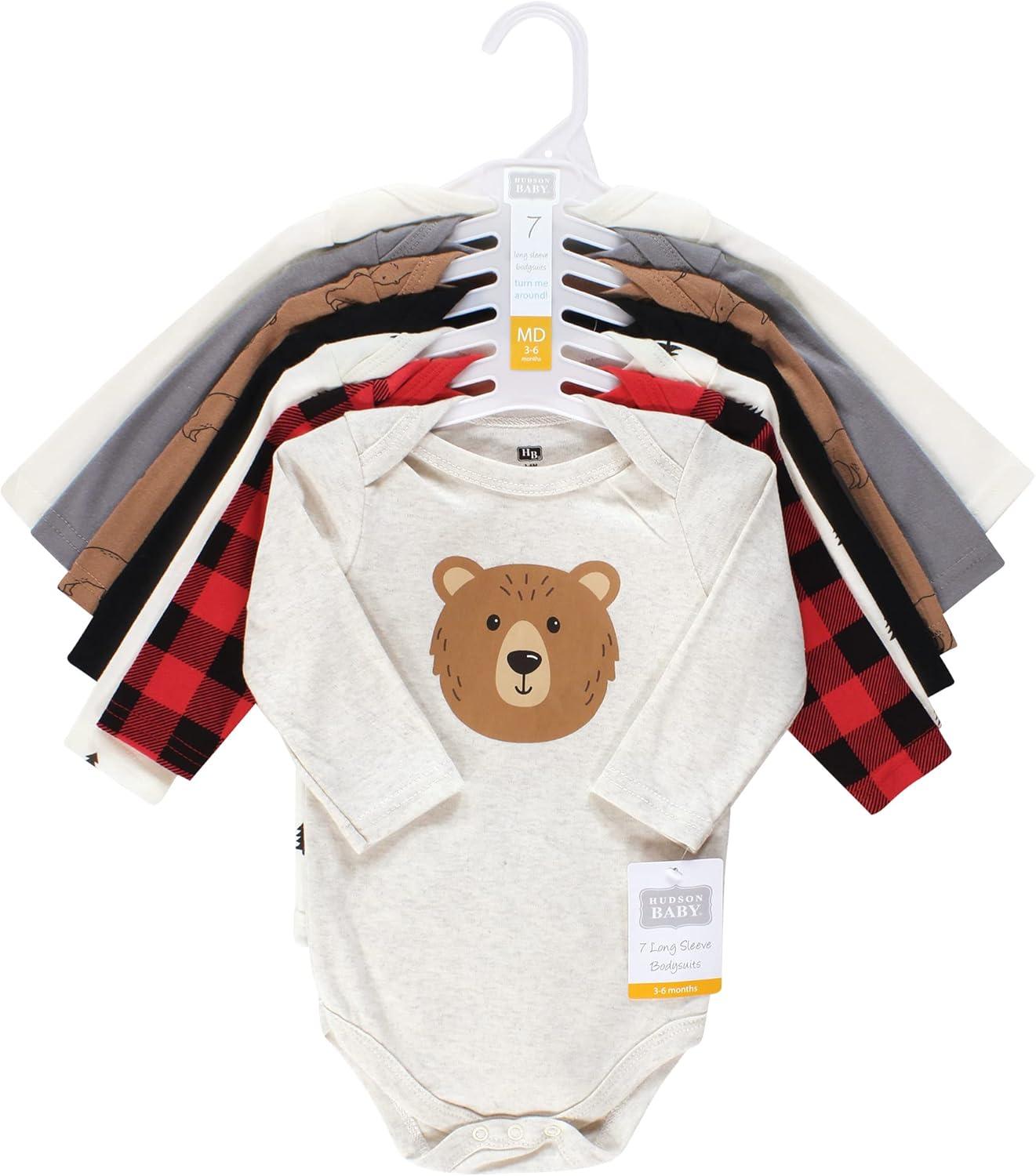 Hudson Baby Baby Boys Cotton Long-sleeve Bodysuits 7-pack(Brown Bear)