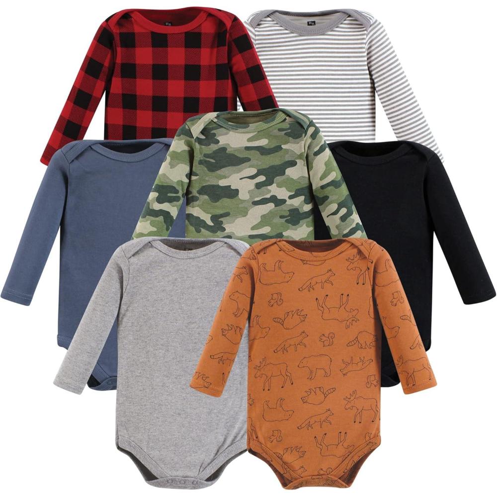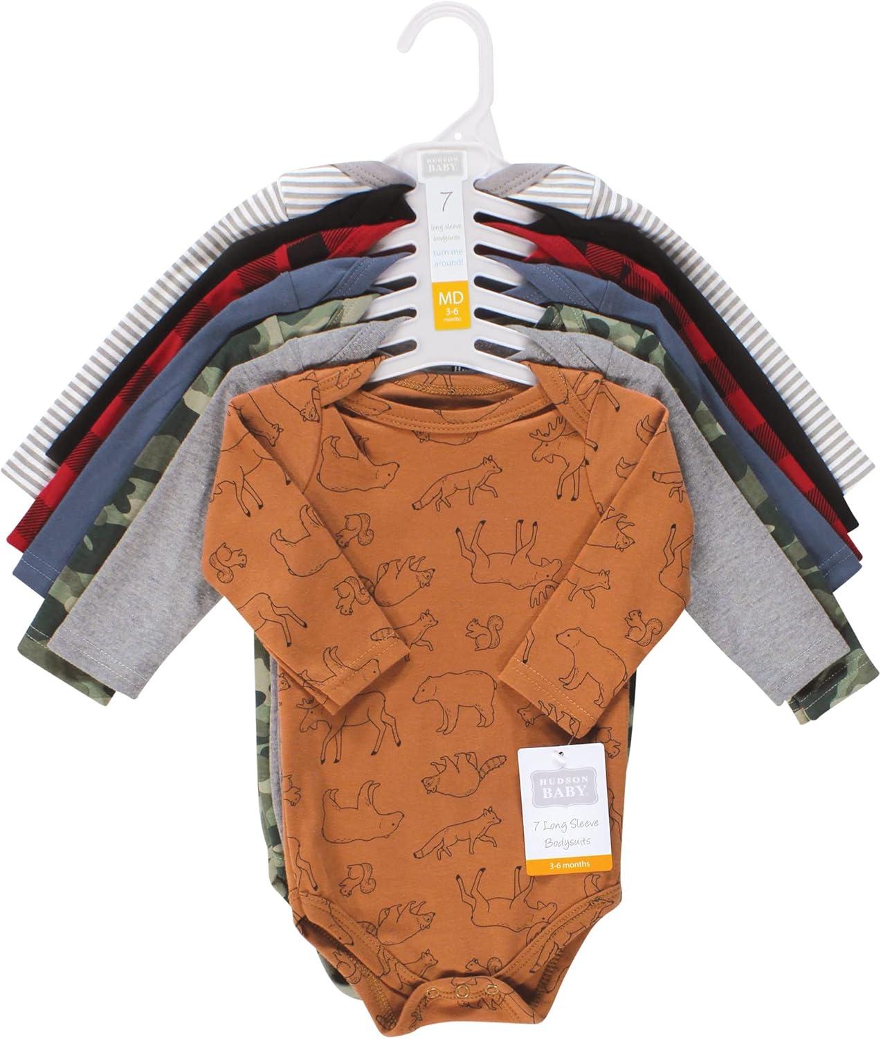 Hudson Baby baby-boys Cotton Long-sleeve Bodysuits 7-pack(Into the Woods Prints)