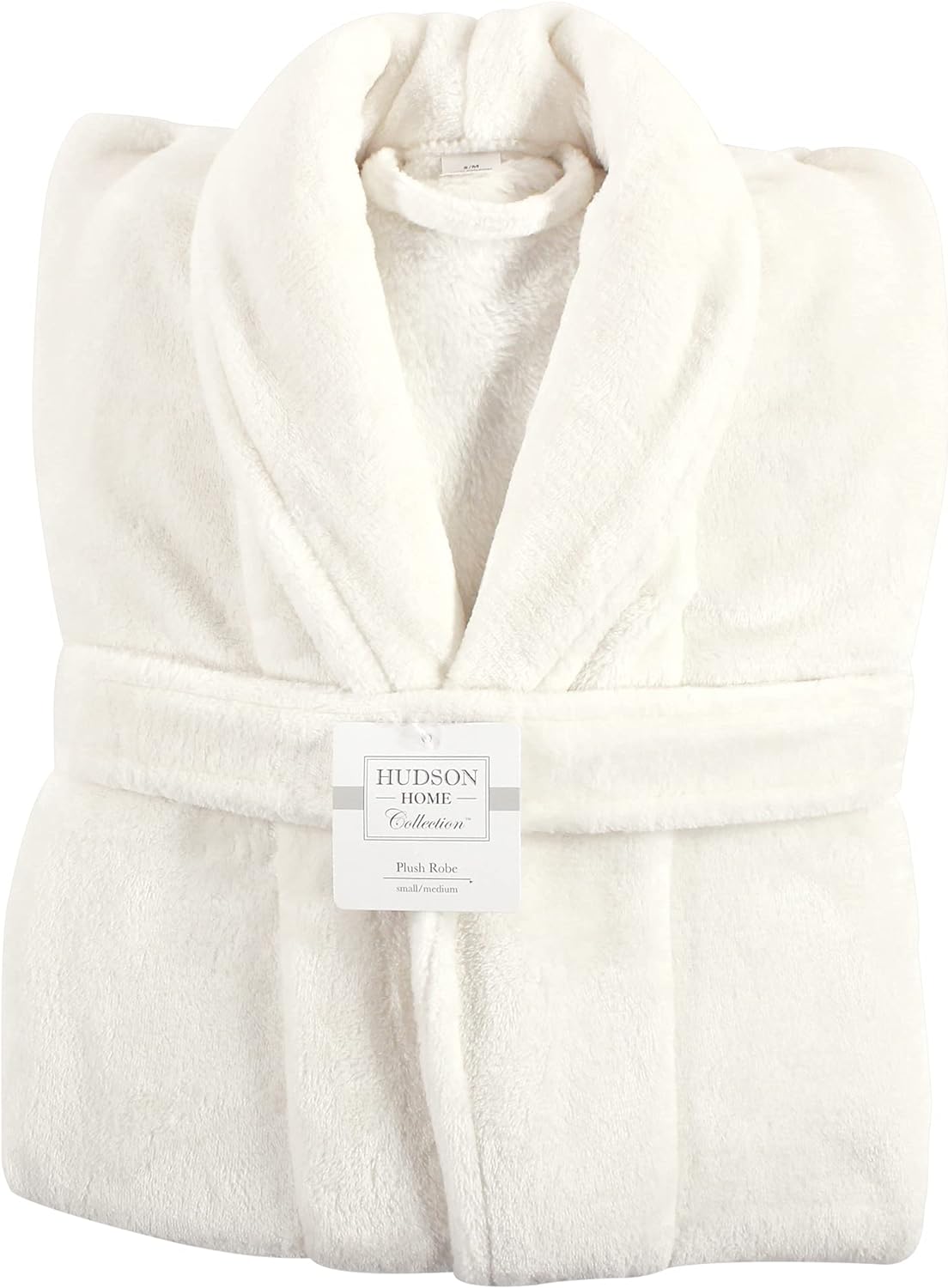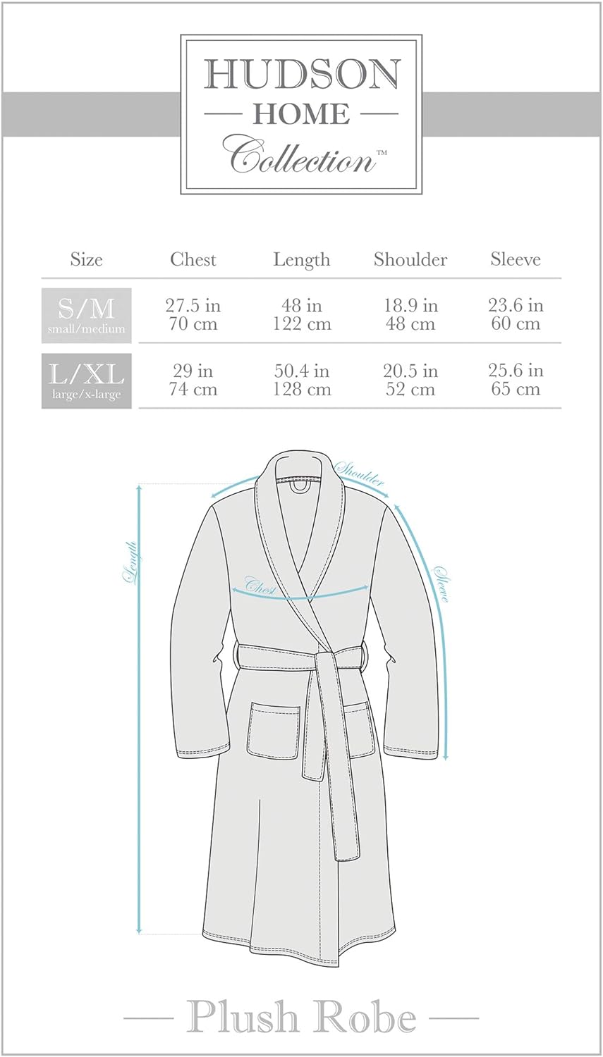 Hudson Home Collection cozy plush bathrobe is made with the most comfortable and durable polyester flannel fabric. Our soft and fluffy robe will give you lasting comfort and relaxation. Optimal for wearing after a shower, before going to bed, or lounging at home.