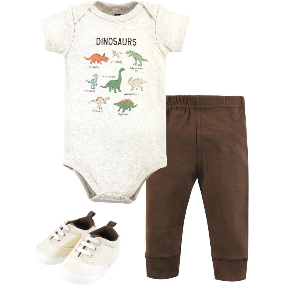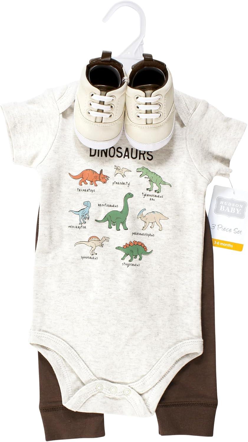 Hudson Baby Baby Cotton Bodysuit, Pant and Shoe Set(Dinosaur Adventures)