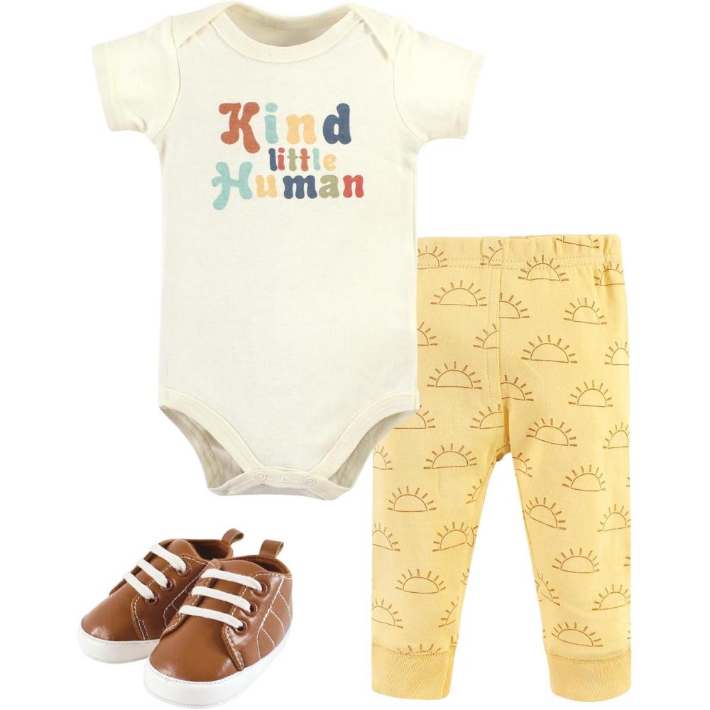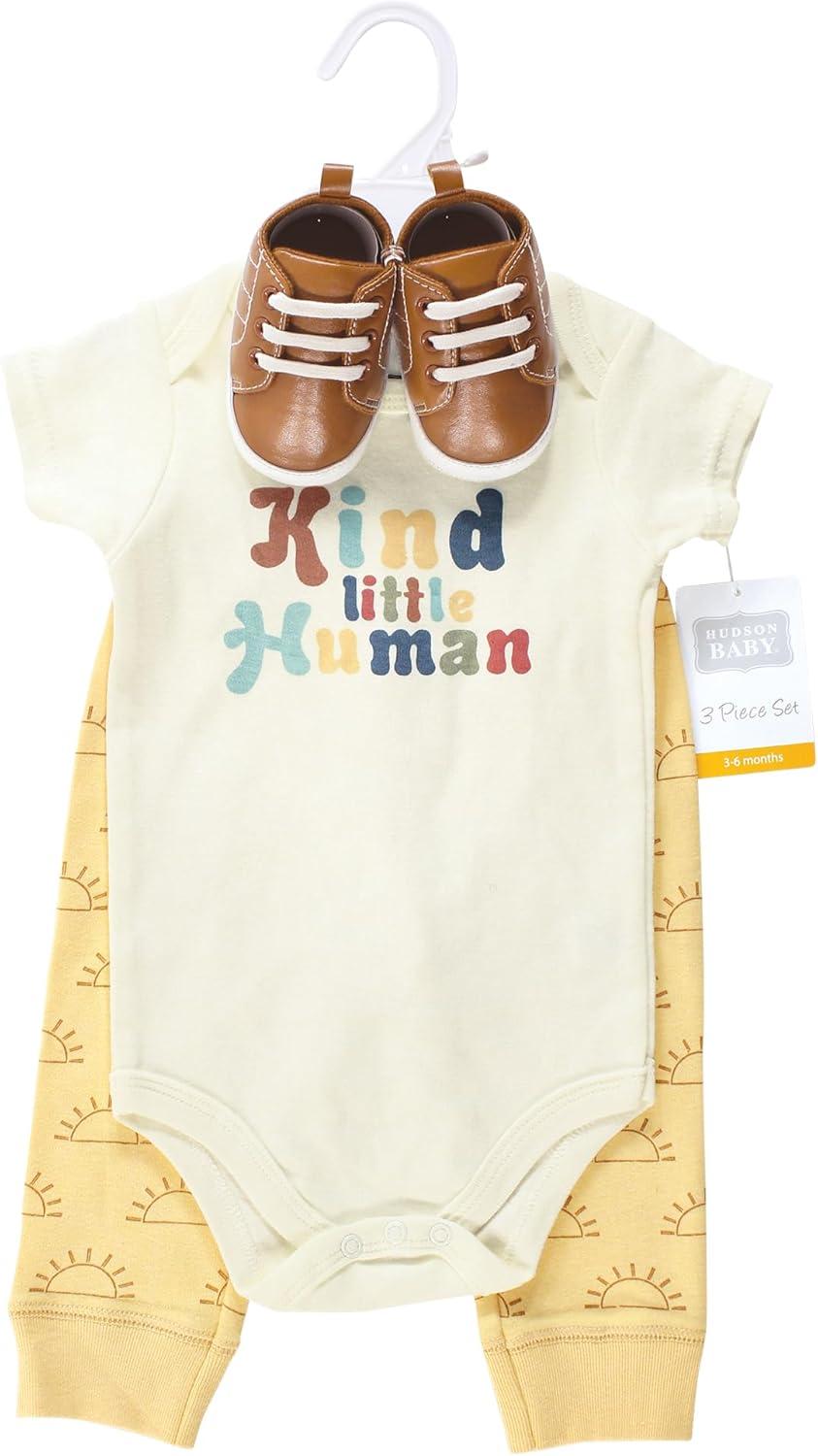 Hudson Baby Baby Cotton Bodysuit, Pant and Shoe Set(Kind Human)