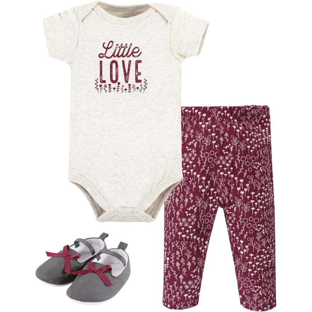 Hudson Baby Baby Cotton Bodysuit, Pant and Shoe Set(Little Love Flowers)