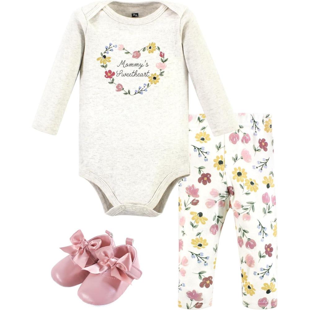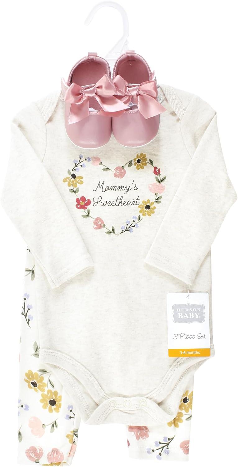 Hudson Baby Baby Cotton Bodysuit, Pant and Shoe Set(Soft Painted Floral)