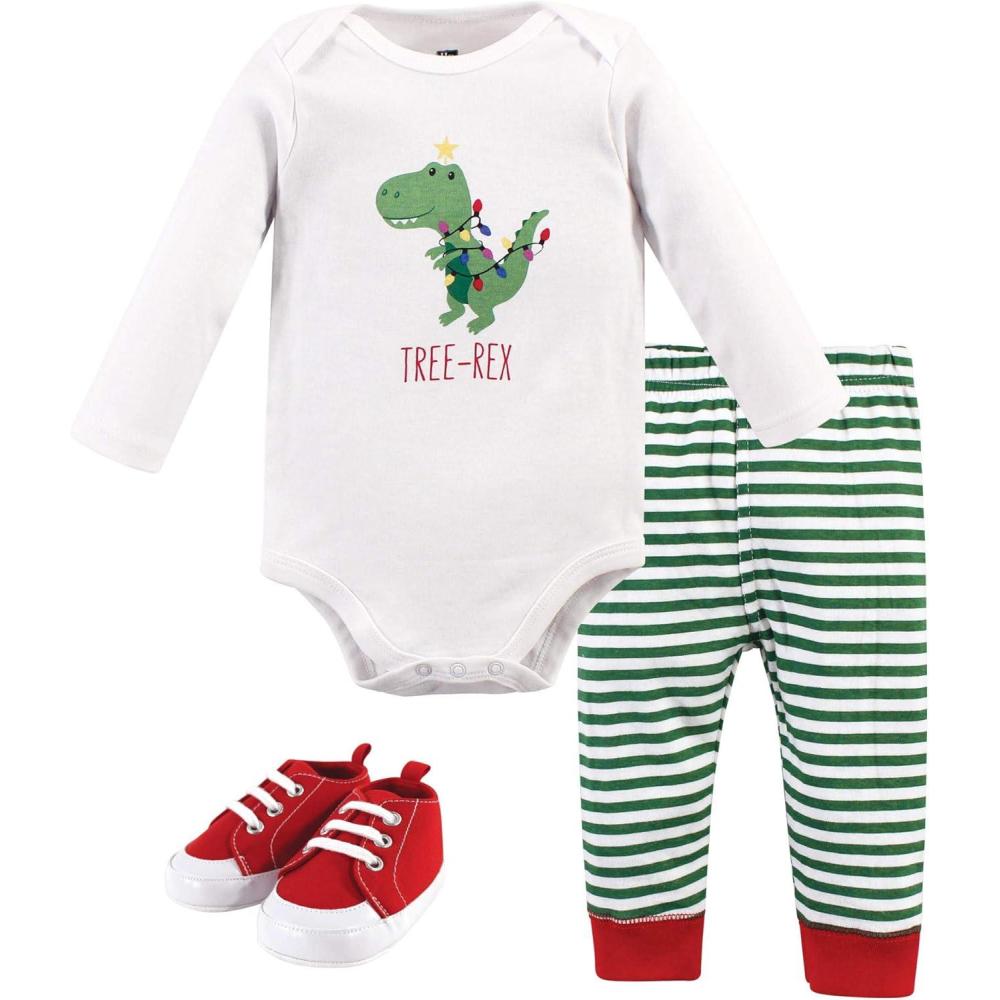 Hudson Baby Baby Cotton Bodysuit, Pant and Shoe Set(Tree Rex)