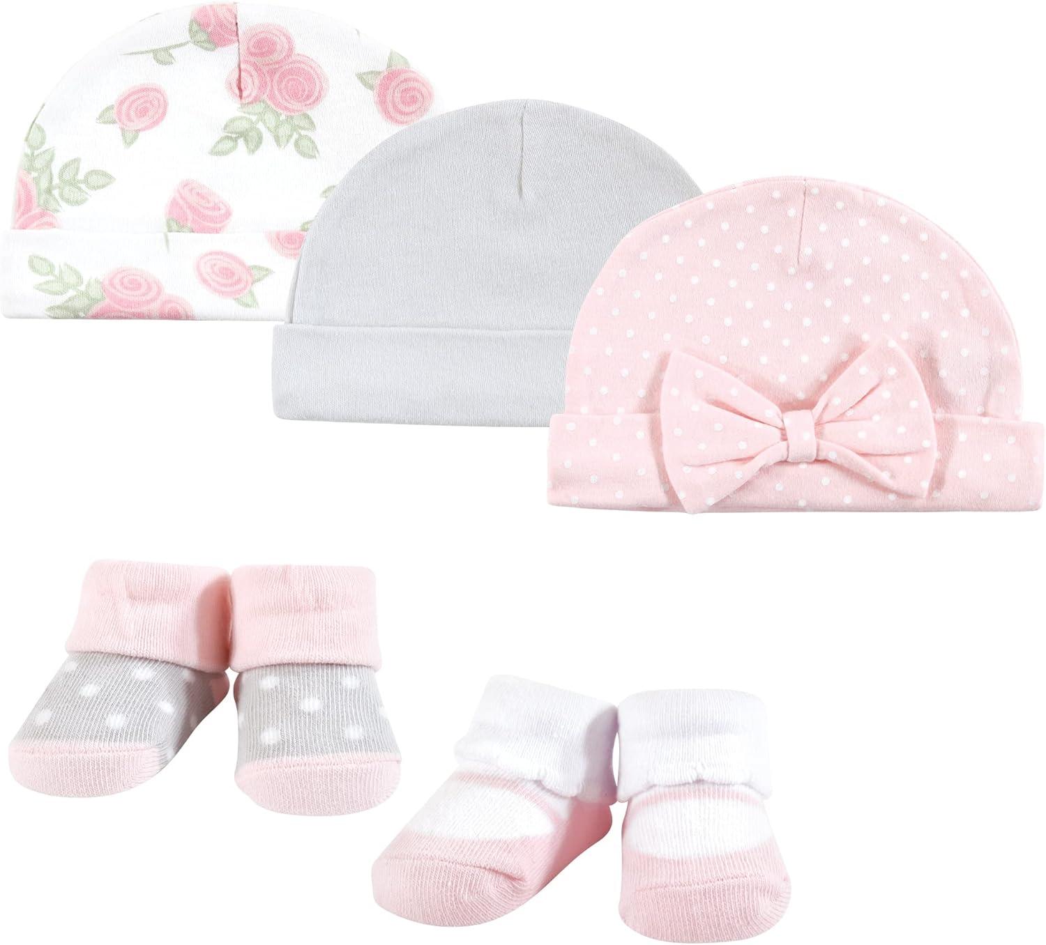 Hudson Baby baby-girls 10pc Cap and Socks Set(Royal Safari Pink Rose)