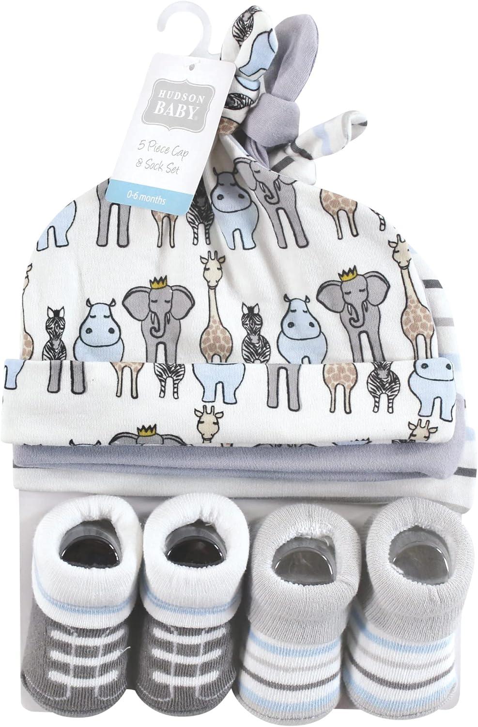 Hudson Baby baby-girls 10pc Cap and Socks Set(Royal Safari Mustache)