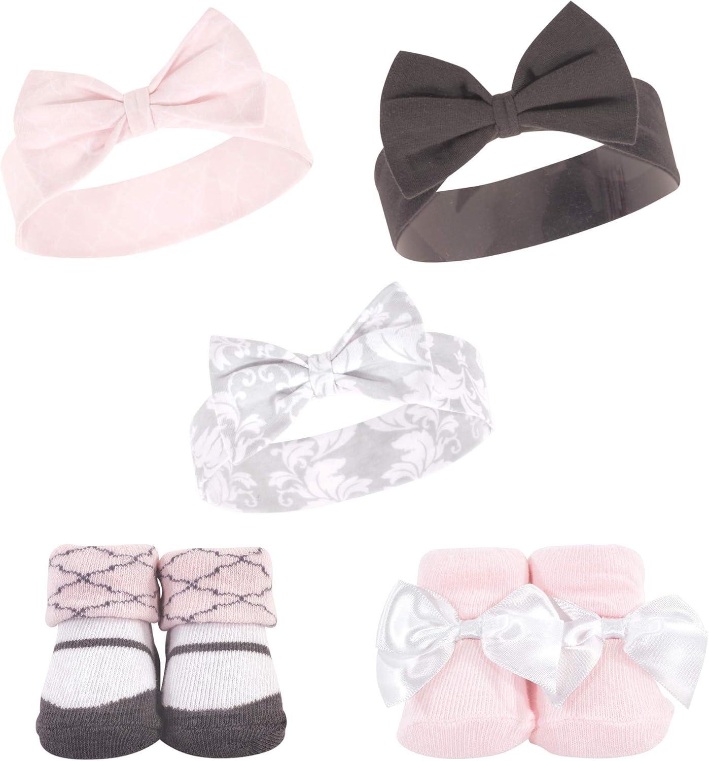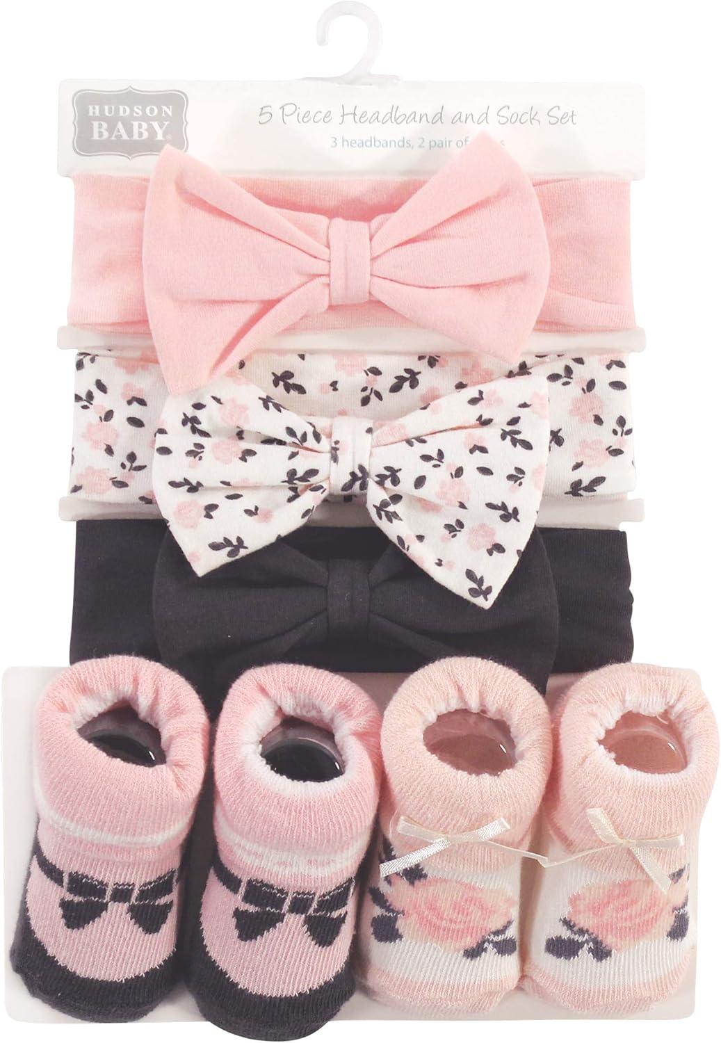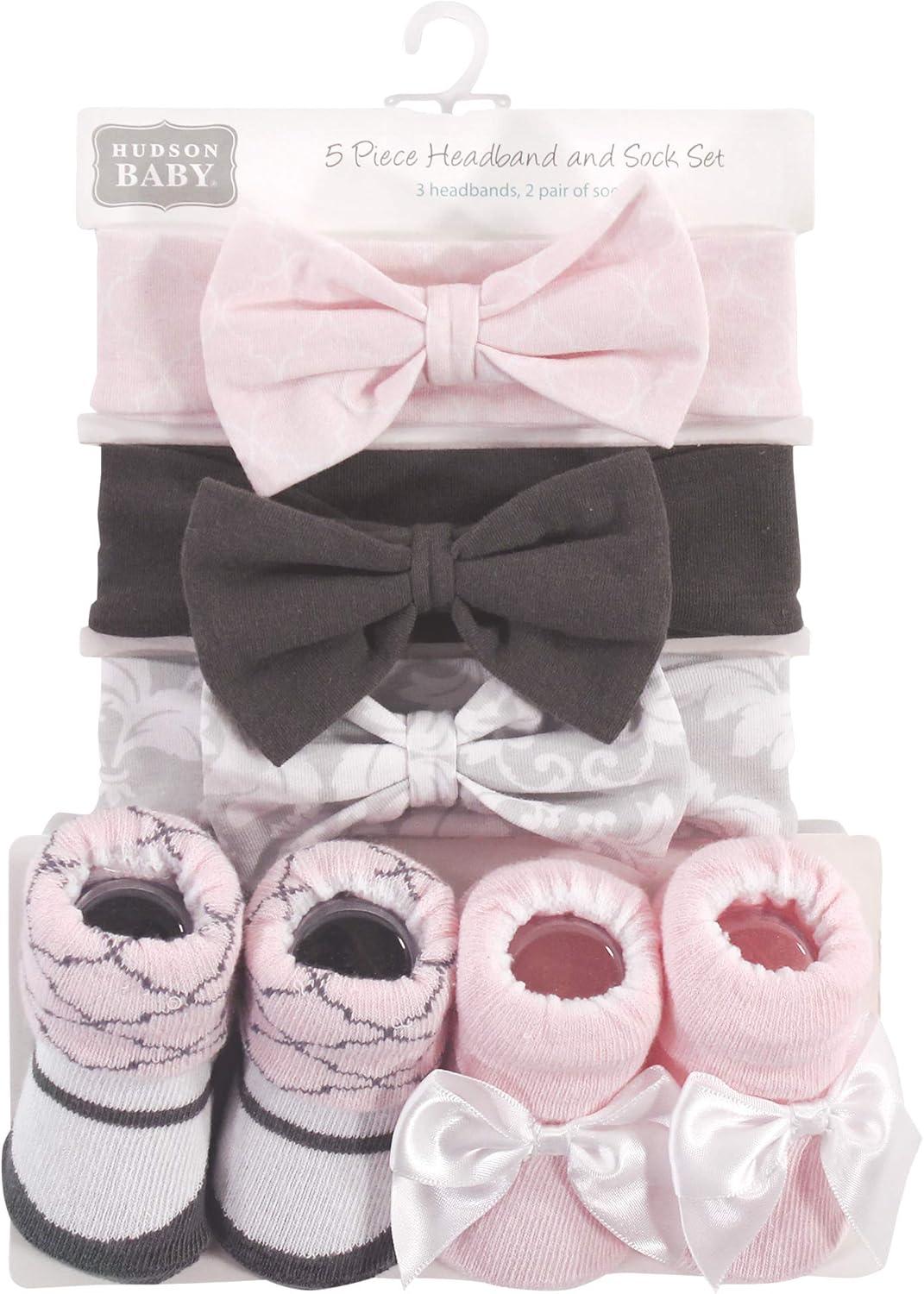 Hudson Baby Baby Girls 10pc Headband and Socks Set(Berry Floral Damask)
