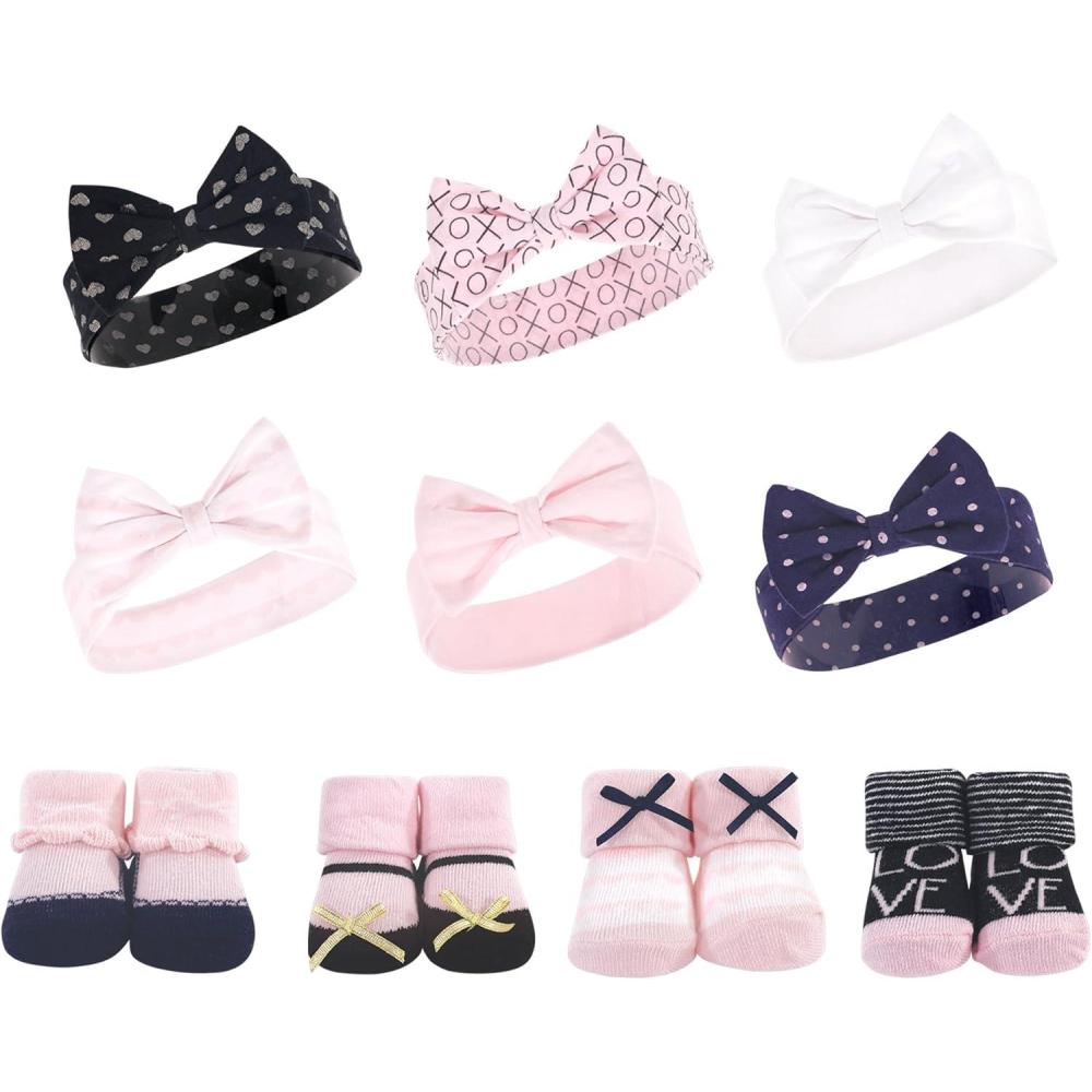Hudson Baby Baby Girls 10pc Headband and Socks Set(Houndstooth Love)