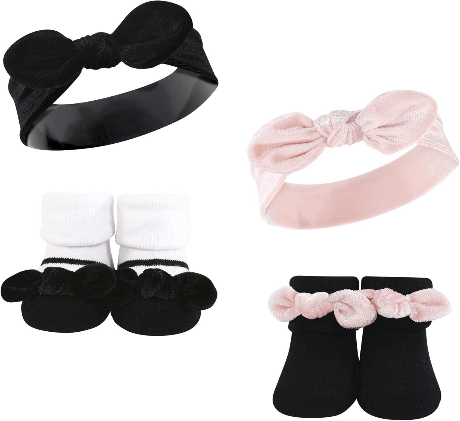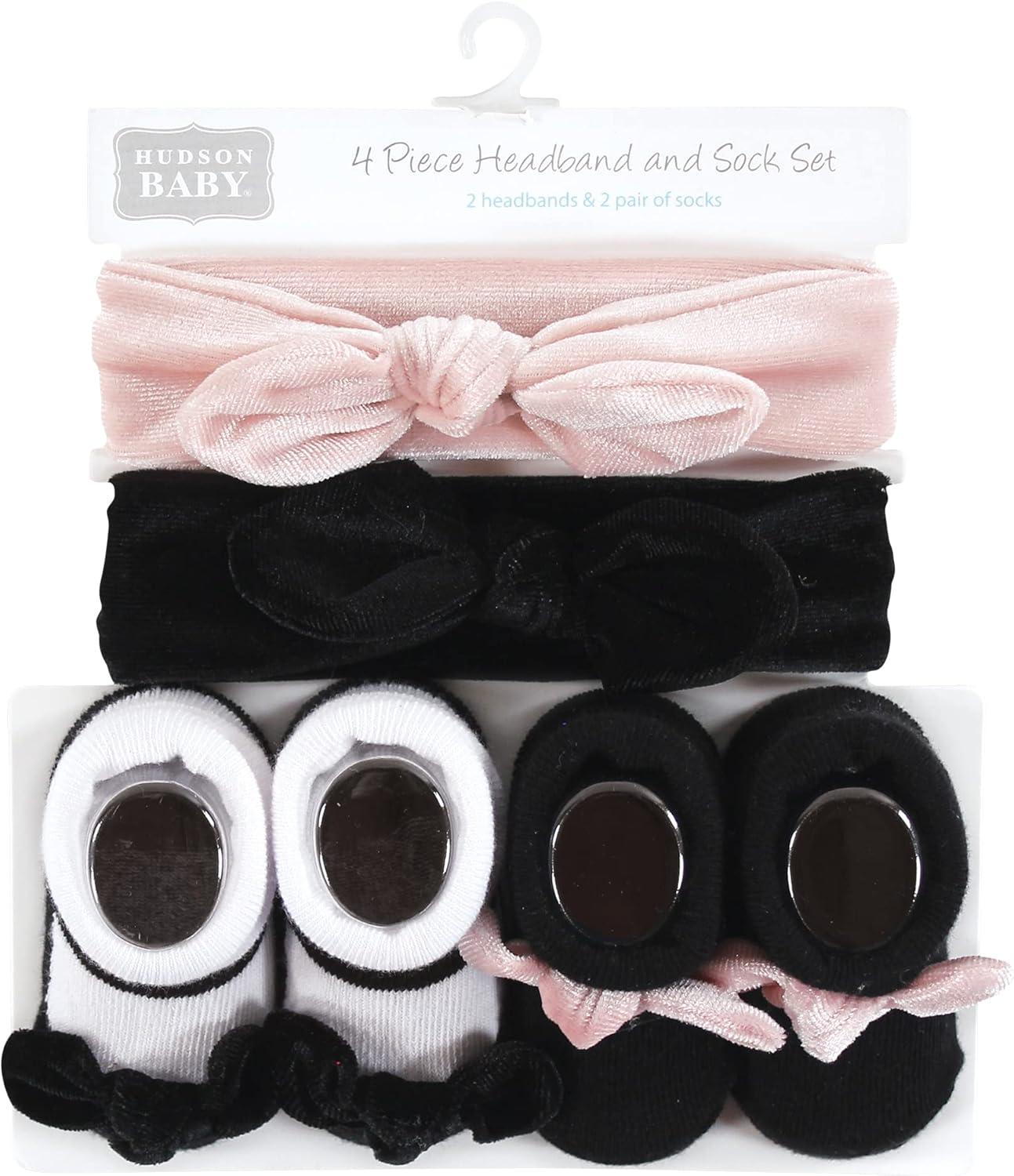 Hudson Baby baby-girls 8pc Headband and Socks Set(Pink Gray)