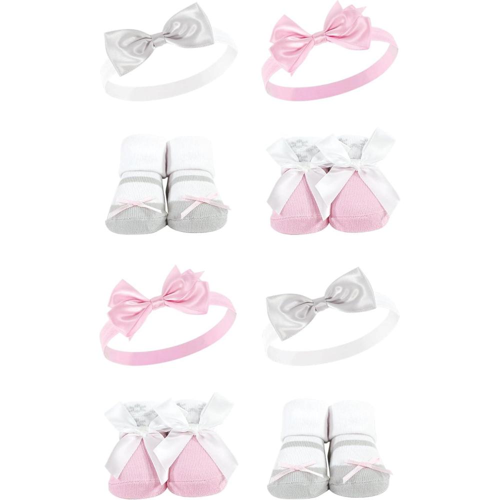 Hudson Baby baby-girls 8pc Headband and Socks Set(Pink Gray)