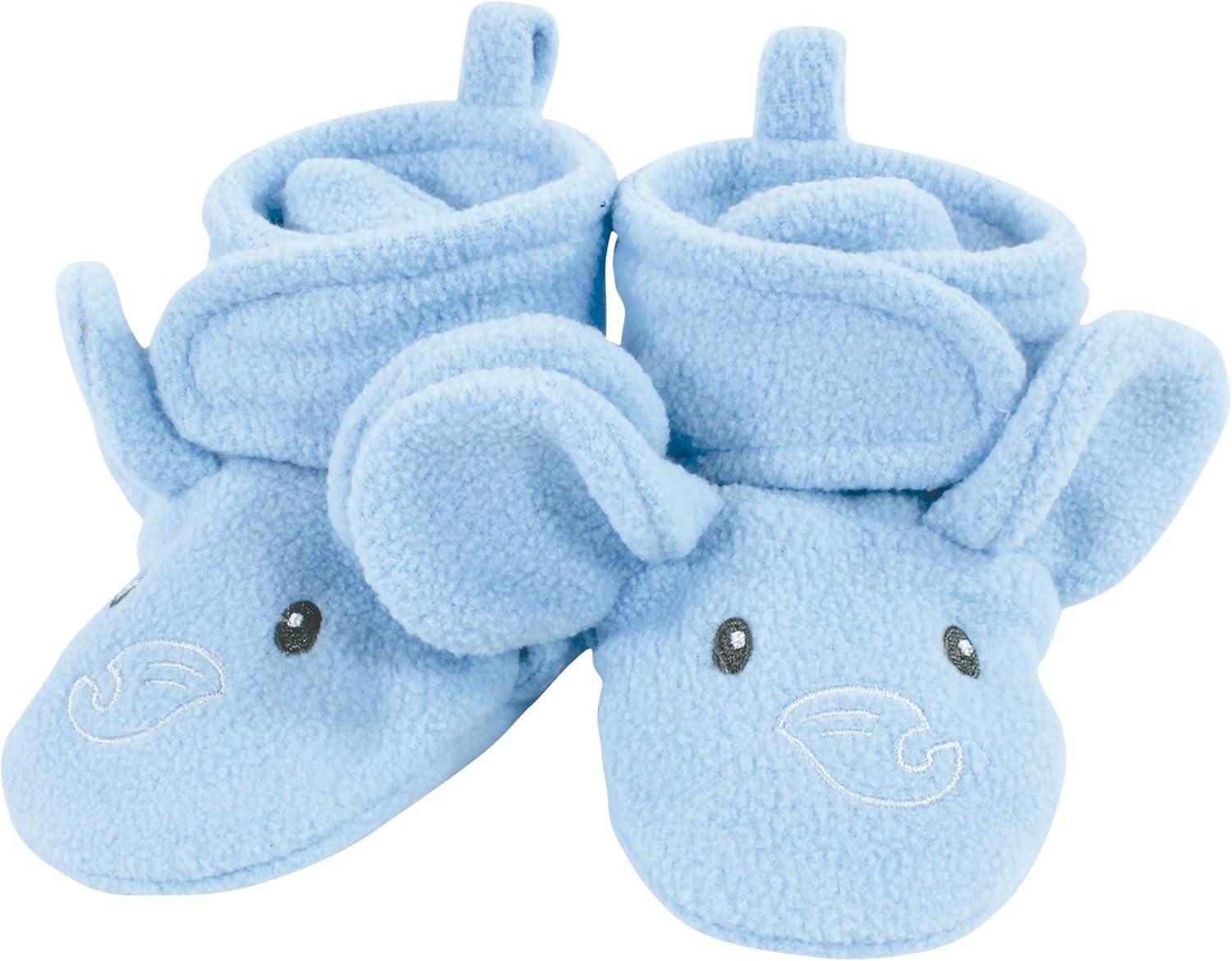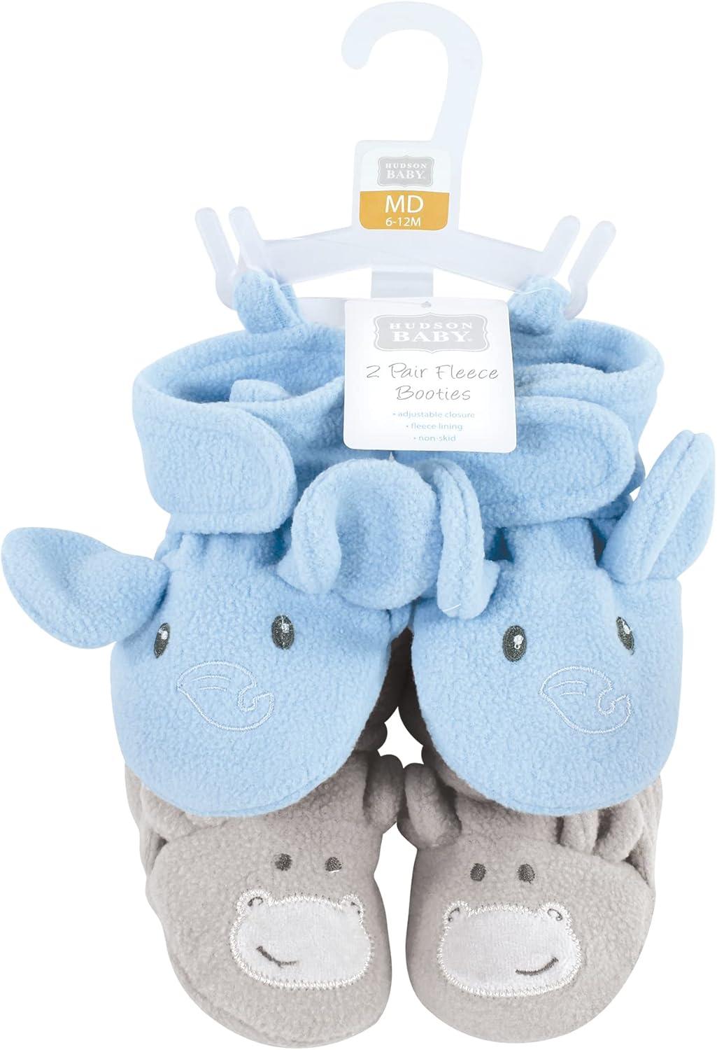 Hudson Baby Baby-Girl’s Animal Fleece Booties 2-Pack Socks(Blue Elephant Hippo)