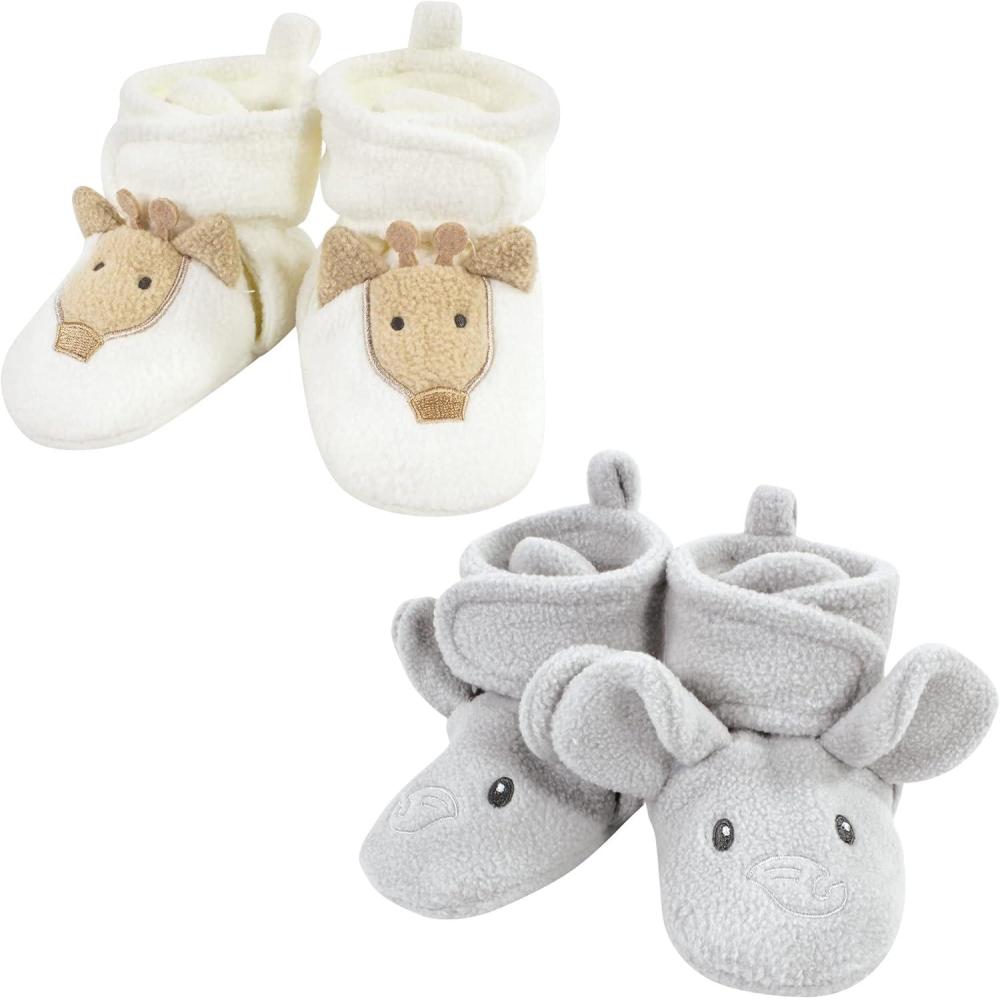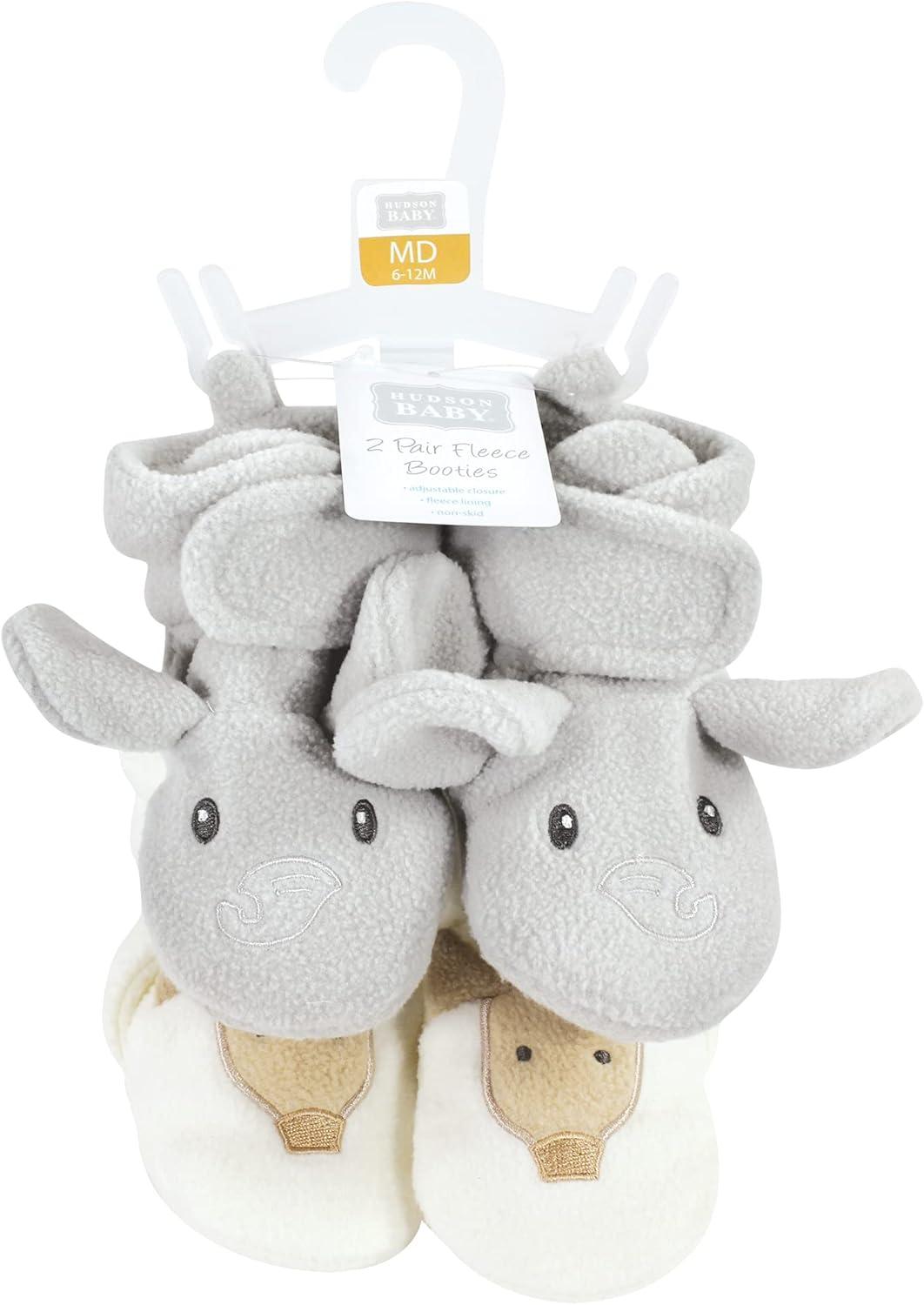 Hudson Baby Baby-Girl’s Animal Fleece Booties 2-Pack Socks(Gray Elephant Giraffe)