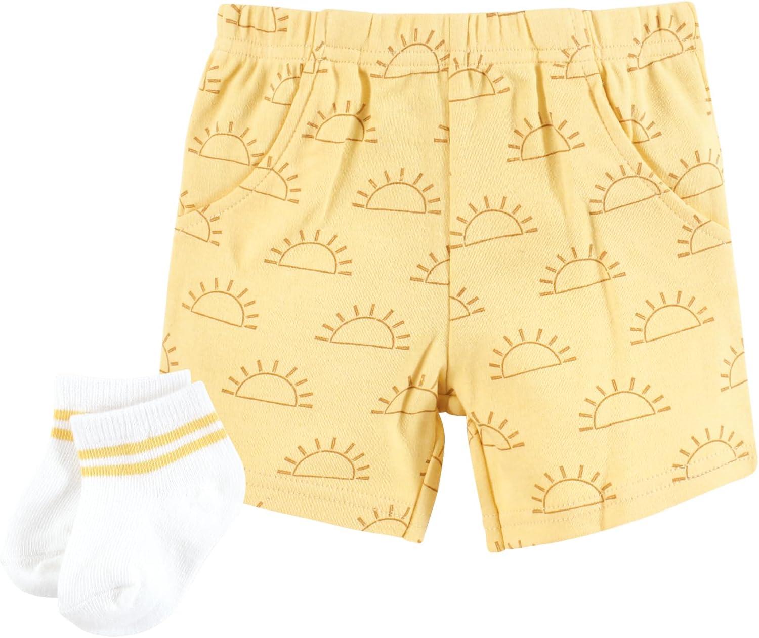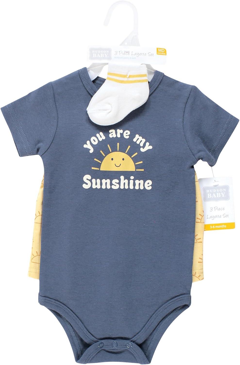 Hudson Baby baby-girls Bodysuit, Short and Sock(Blue Sunshine)