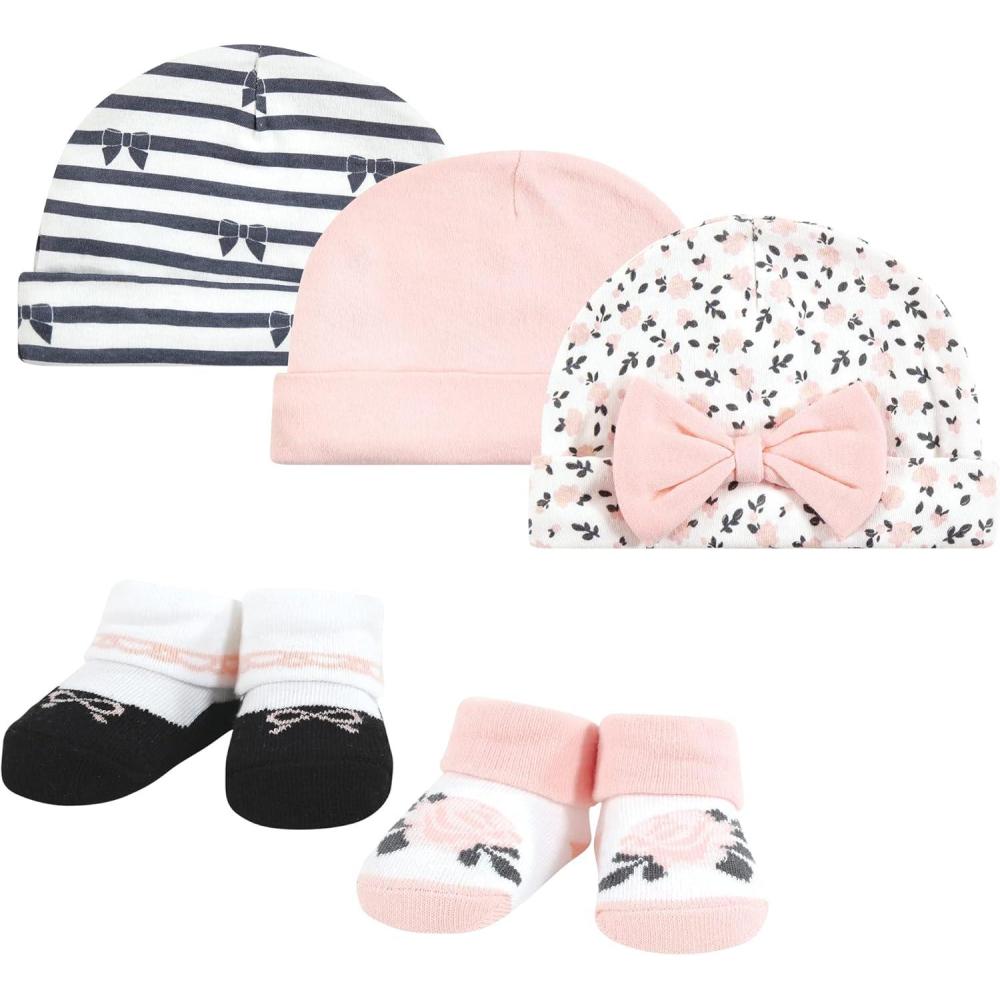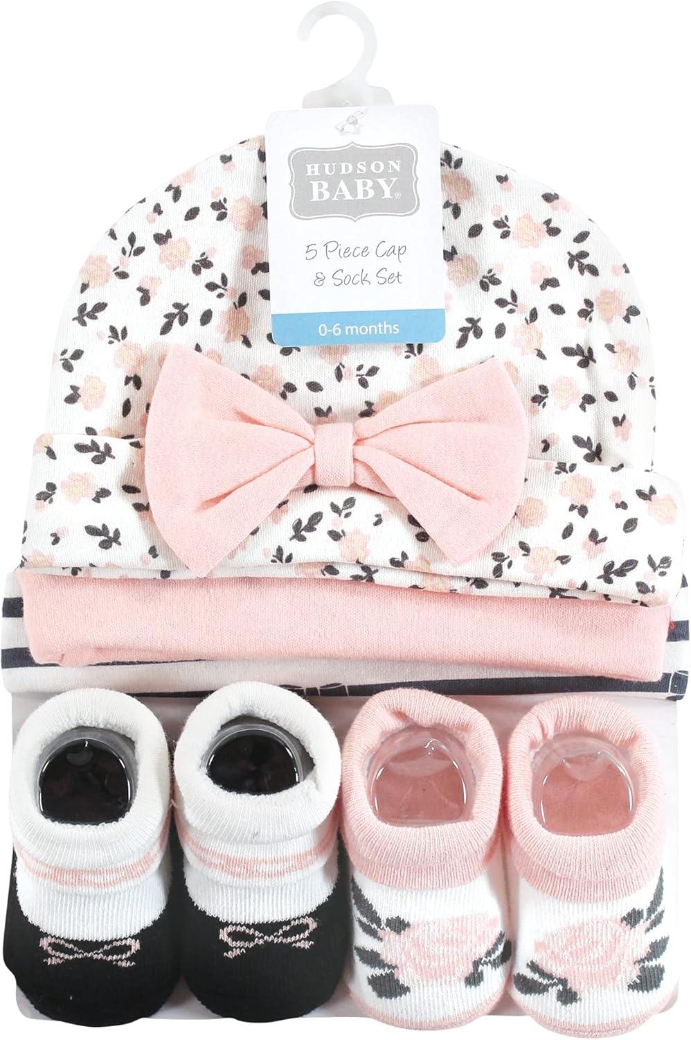 Hudson Baby Baby Girls’ Cap and Socks Set(Berry Floral)
