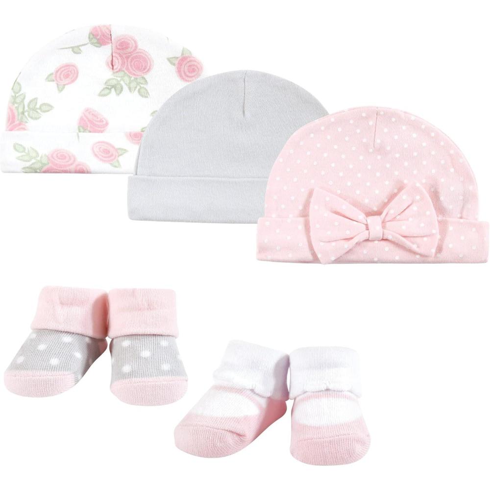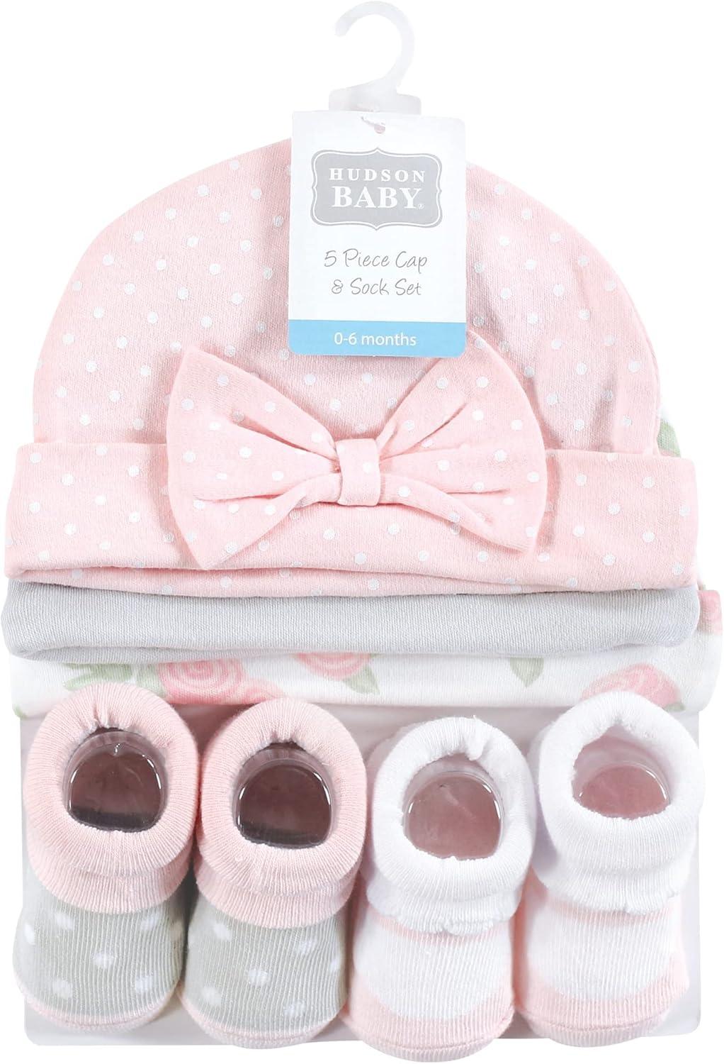 Hudson Baby Baby Girls’ Cap and Socks Set(Pink Rose)