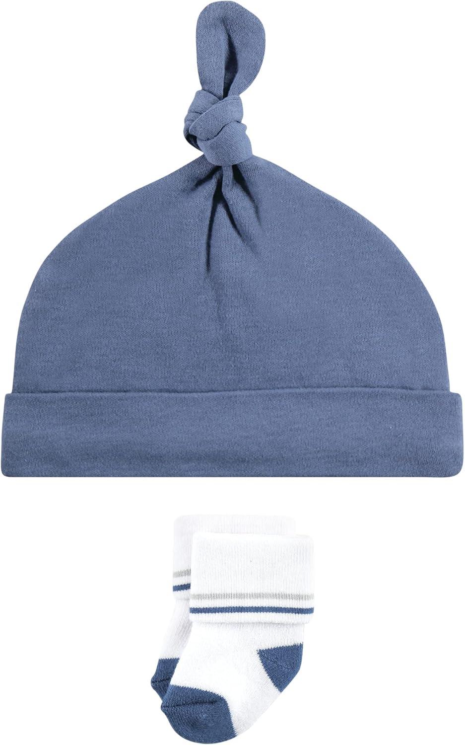 Hudson Baby cotton cap and socks set is the perfect set for your newborn. Our caps and socks will help your little one stay warm and matching from head to toes! Socks have elastic so they stay snug on feet, but not too tight. Both caps and socks are made to be gentle on baby's skin. Fits ages 0-9 months.