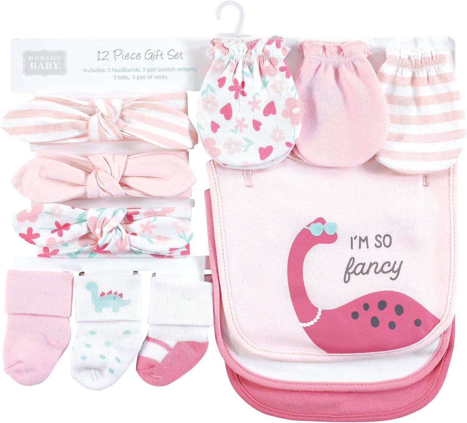 Hudson Baby Baby Girls Caps or Headbands, Bibs, Mittens and Socks 12pc Set