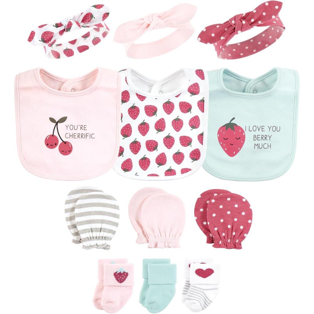 Hudson Baby Baby Girls Caps or Headbands, Bibs, Mittens and Socks 12pc Set