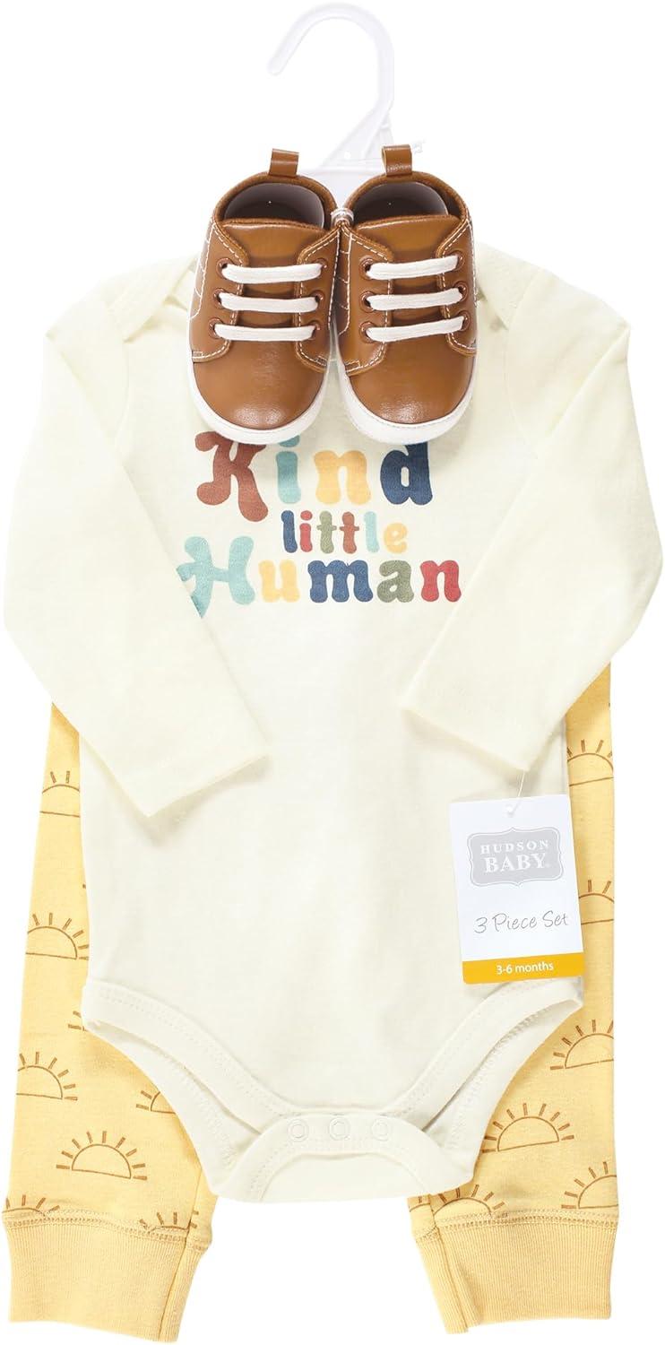 Hudson Baby bodysuit, pant, and shoes sets are an adorable, fashionable outfit to dress your baby for a day out. Your little one will be the most stylish, comfortable baby in the neighborhood with our bodysuit and pant and matching pair of shoes.