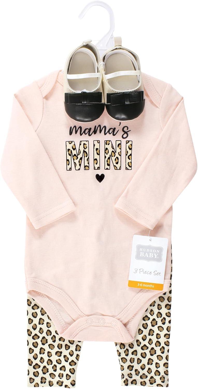 Hudson Baby baby-girls Cotton Bodysuit, Pant and Shoe Set(Leopard Hearts)
