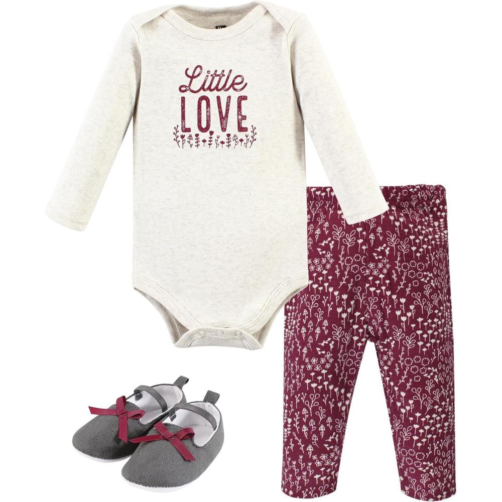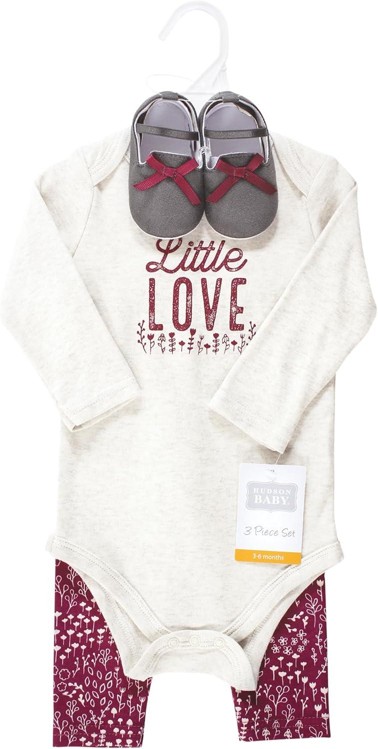 Hudson Baby baby-girls Cotton Bodysuit, Pant and Shoe Set(Little Love Flowers)