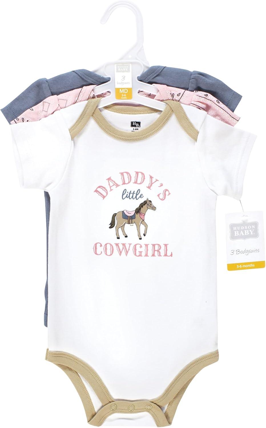 Hudson Baby baby-girls Cotton Bodysuits 3-pack(Cowgirl)