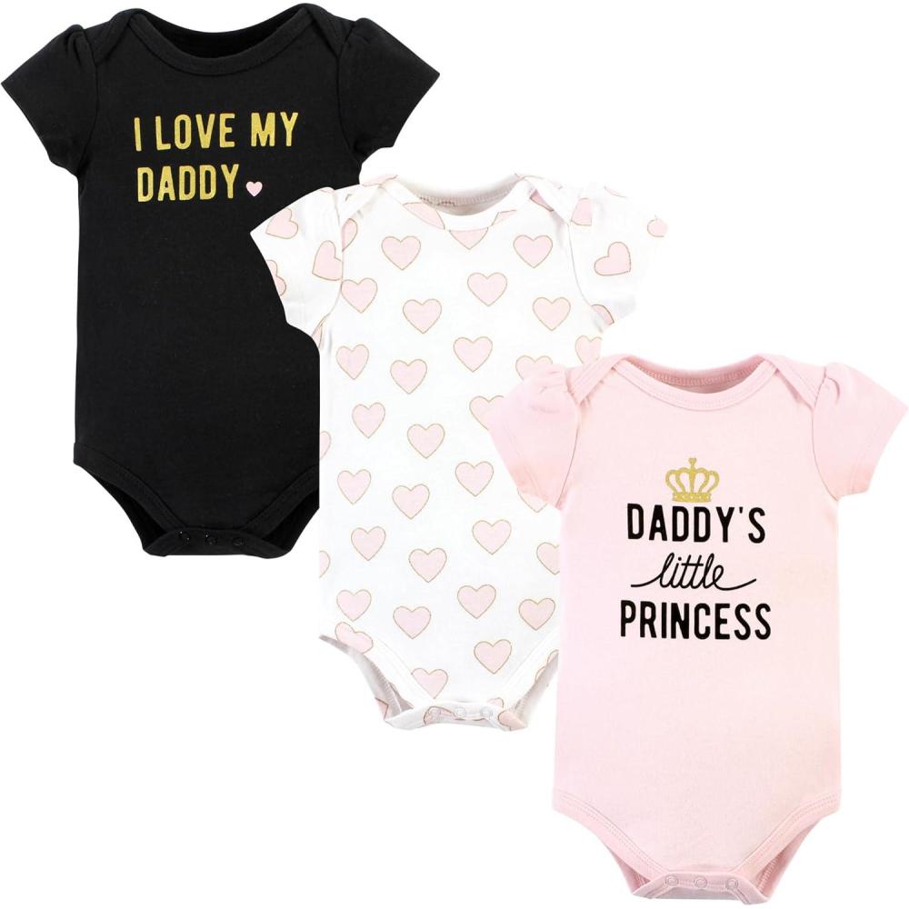 Hudson Baby baby-girls Cotton Bodysuits 3-pack(Daddys Little Princess)