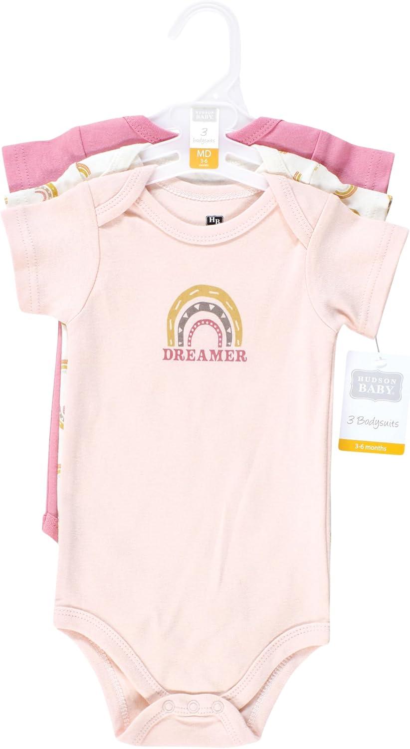 Hudson Baby baby-girls Cotton Bodysuits 3-pack(Dreamer Rainbow)