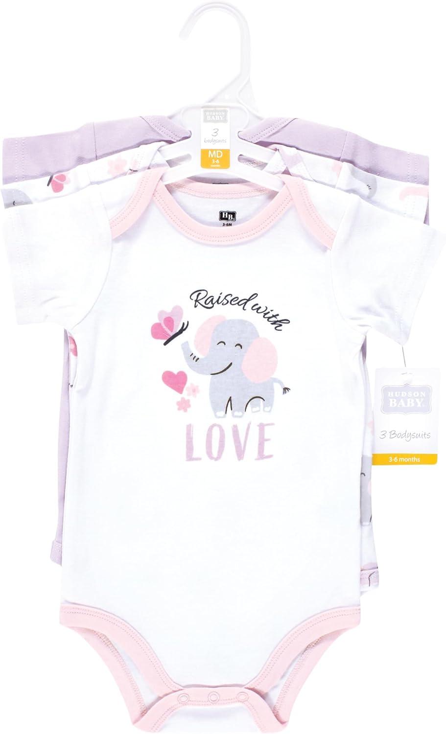 Hudson Baby baby-girls Cotton Bodysuits 3-pack(Elephant Butterfly)