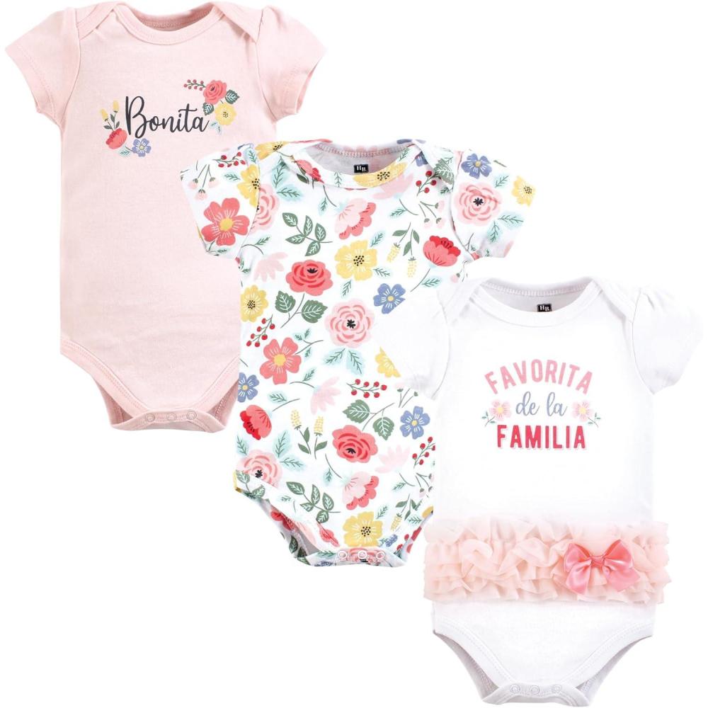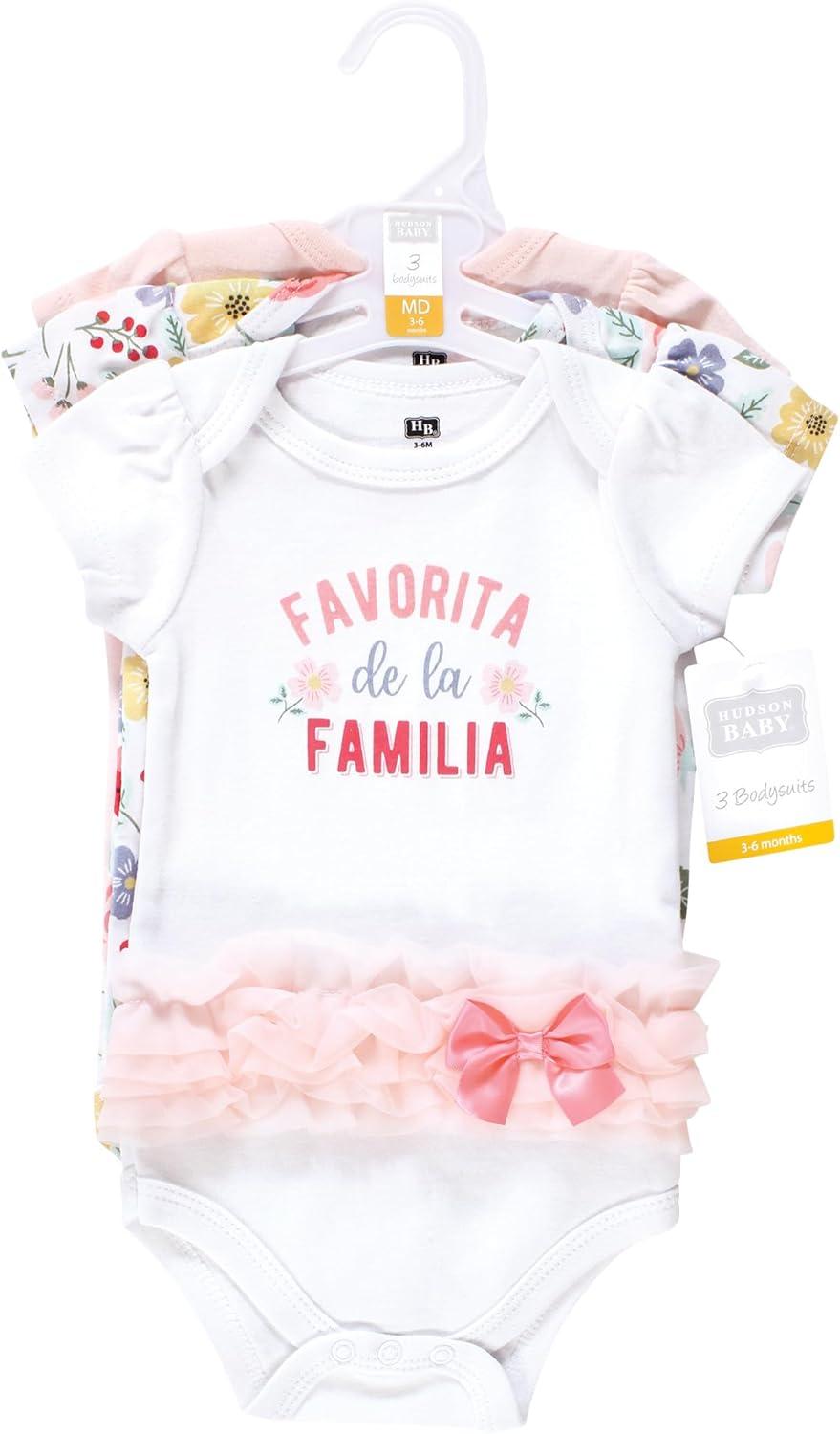 Hudson Baby baby-girls Cotton Bodysuits 3-pack(Favorita Botanical Tutu)