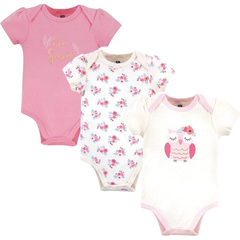 Hudson Baby baby-girls Cotton Bodysuits 3-pack(Free Spirit Owl)