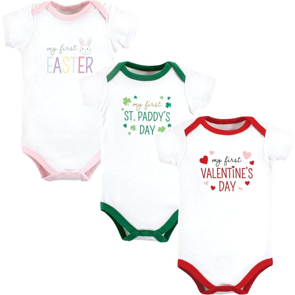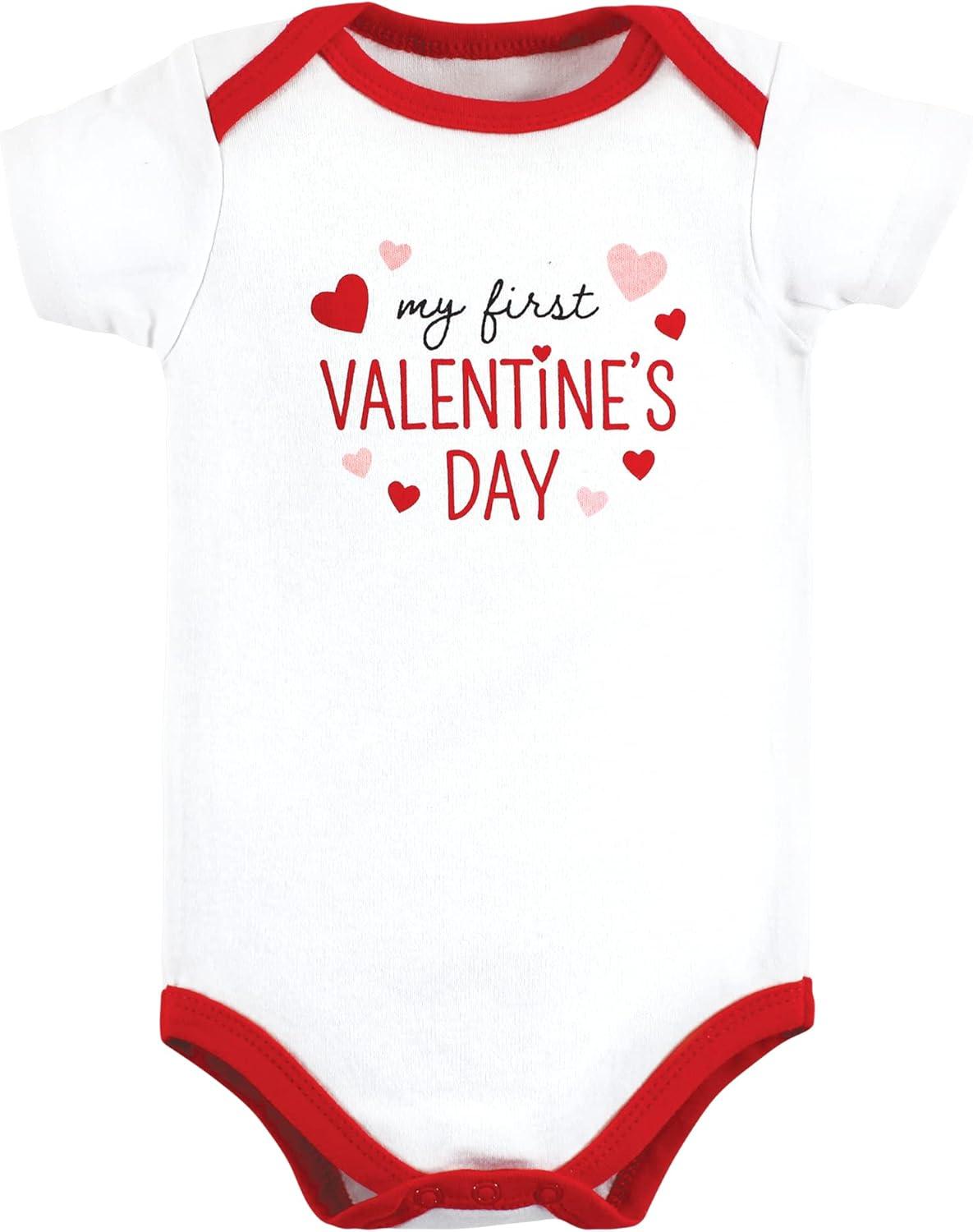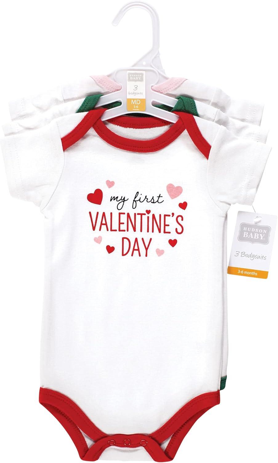 Hudson Baby baby-girls Cotton Bodysuits 3-pack(Girl First Valentine Easter)