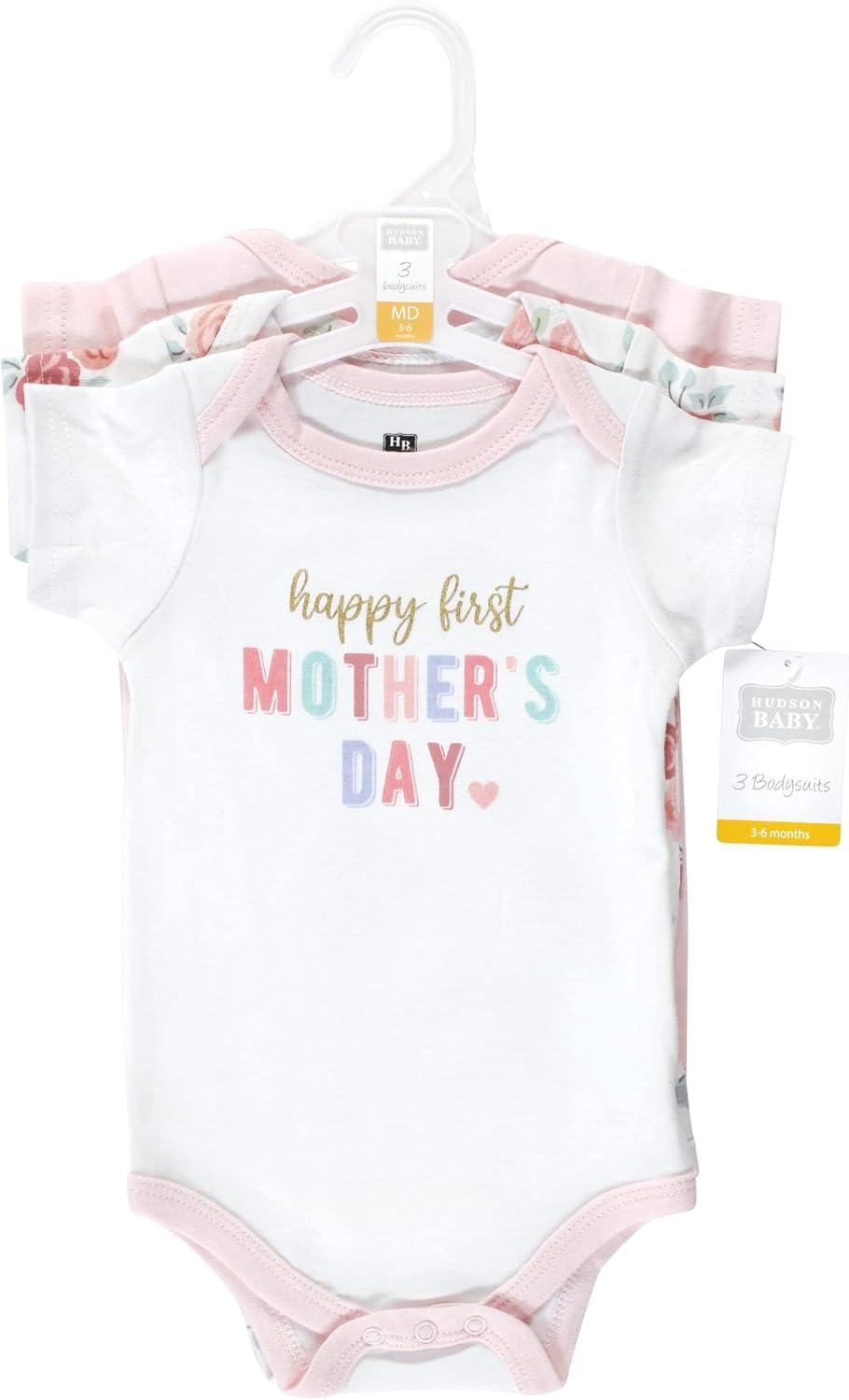 Hudson Baby baby-girls Cotton Bodysuits 3-pack(Girl Mothers Day)